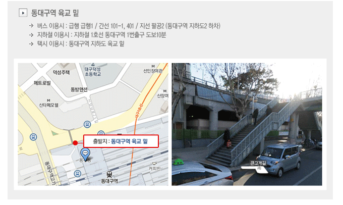 동대구역 바로 옆 육교(파티마병원 방향) 밑 입니다.