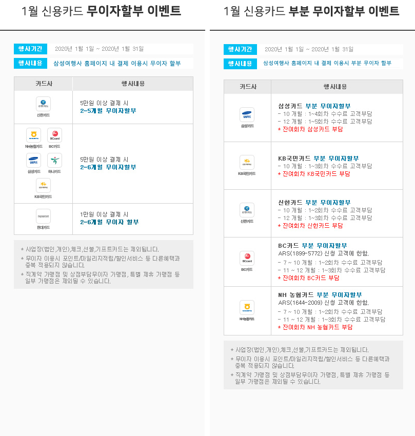 - 사업장(법인, 개인), 체크, 선불, 기프트카드는 제외 됩니다.