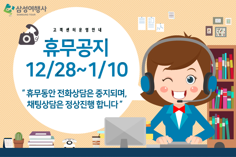 12/28~1/10까지 휴무로 인해 전화상담이 중지되며, 채팅상담은 정상진행 합니다.