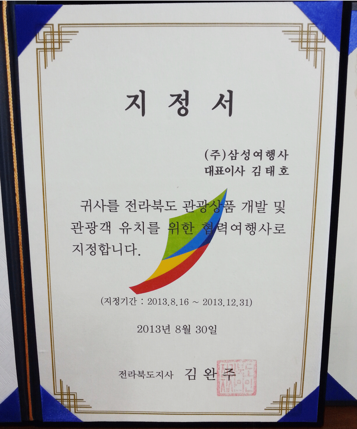 전국 5개 여행사 중 영남지역(대구/경북/경남지역) 대표로 선정되어