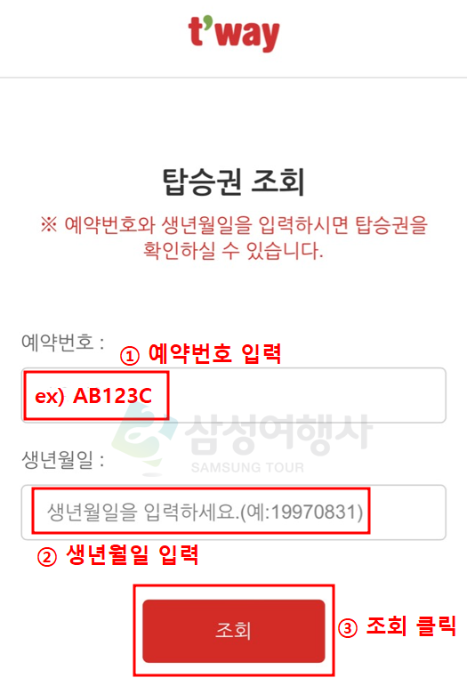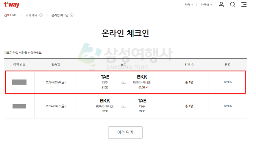 온라인 체크인(무료 좌석 지정) 시 아래와 같이 진행하시면 됩니다. 티웨이항공 링크 바로가기 ↓↓↓↓↓ https://www.twayair.com/app/reservation/searchCheckinItinerary