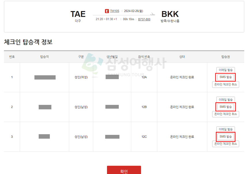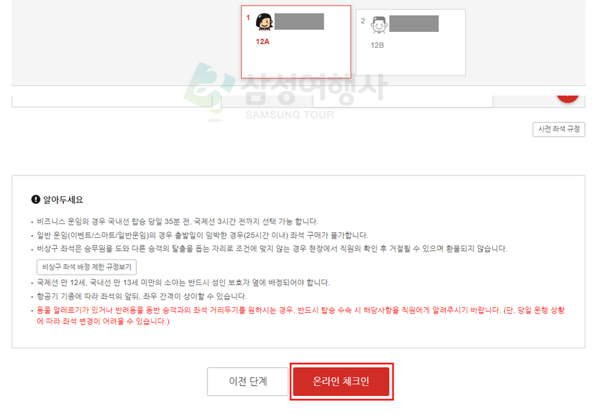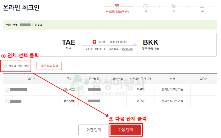 5. 탑승객 전체 선택 후 다음 단계 클릭!