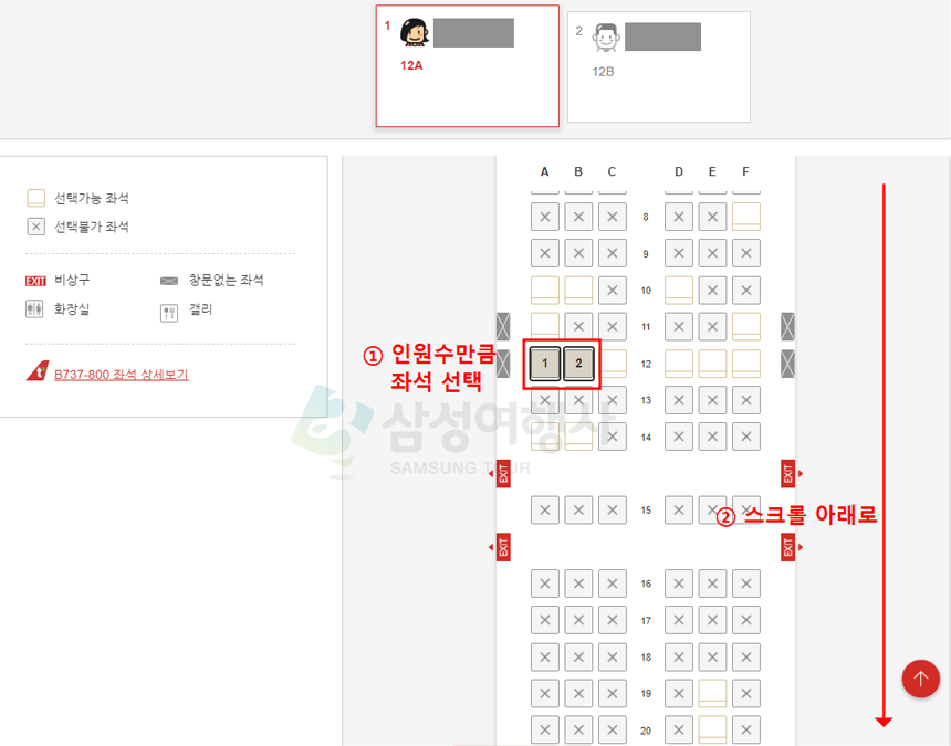 7. 인원수만큼 원하는 좌석 후 스크롤 아래로 내리기