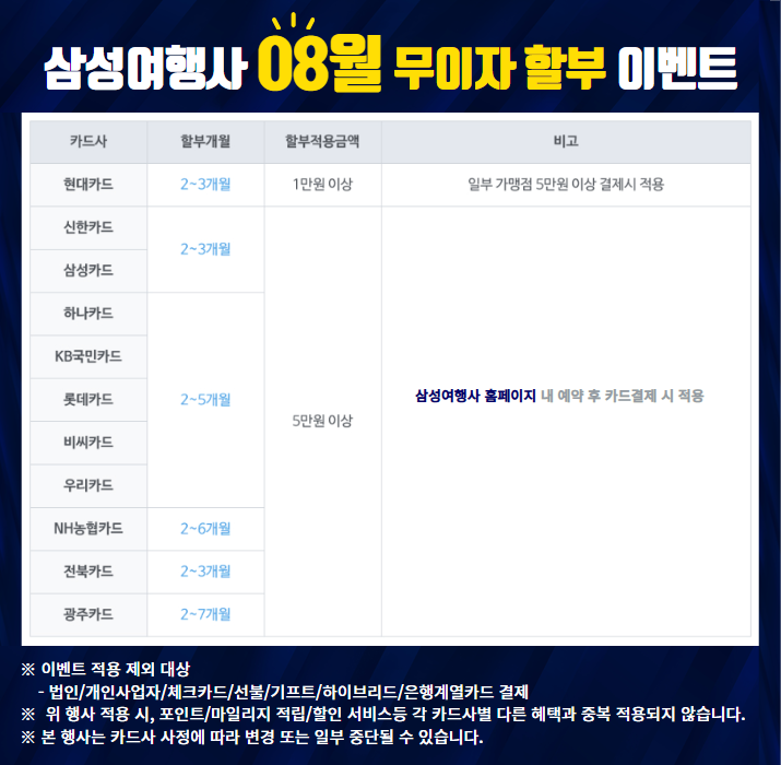 25년 8월 카드 무이자 할부 관련 안내 드리니 아래와 같이 확인부탁드립니다.