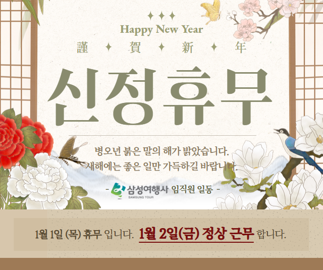 2026년 각 가정에 좋은 일만 가득하시길 바라며 아래와 같이 휴무 공지를 드립니다.