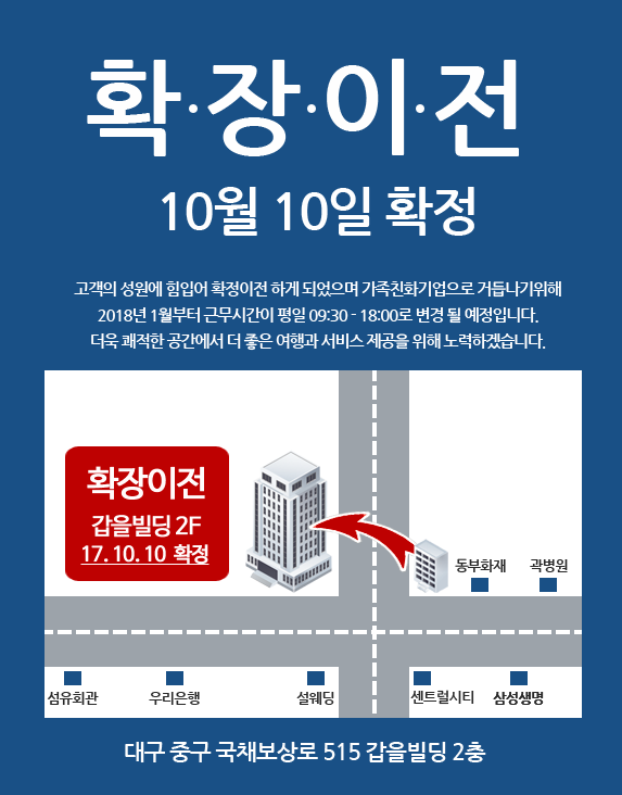지금보다 더 넓고 쾌적한 곳으로 확장이전을 하게 되었으니 많은 양해 부탁드립니다.