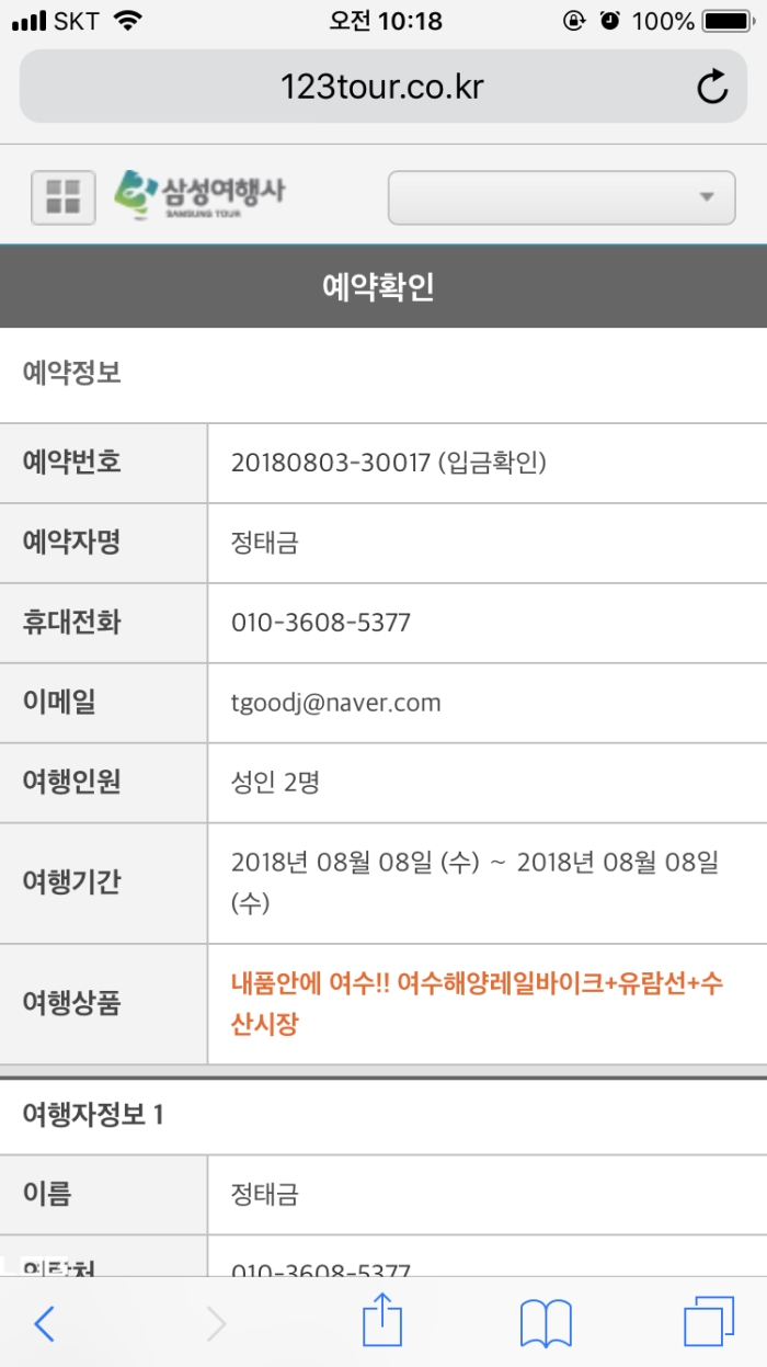 8/8일 여수 기차여행 예약을 했는데요.