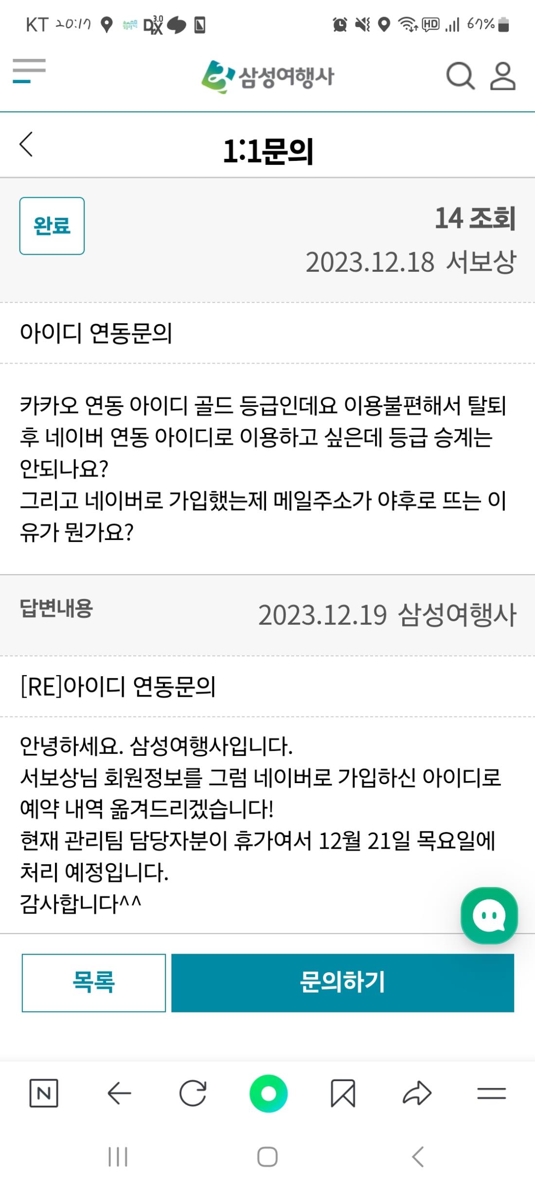 문의후 답변 받았는데 왜 카카오 골드등급 네이버로 안 옮겨진걸까요?