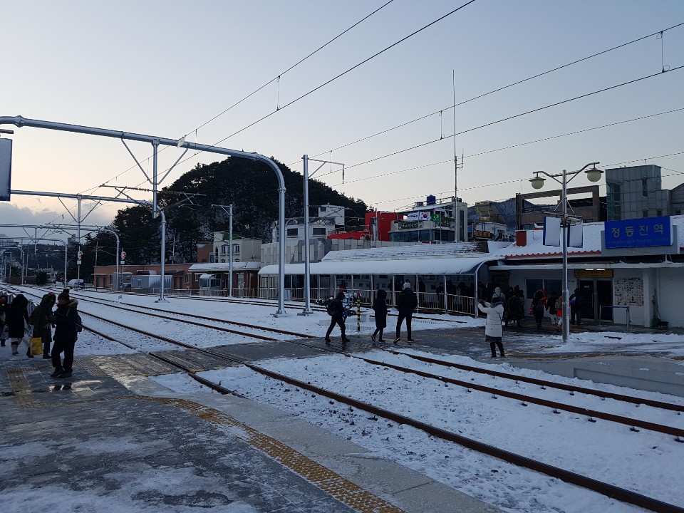 정동진에 도착하니 눈도 쌓여있고, 겨울 느낌이 물씬나는 하루의 시작이었습니다.