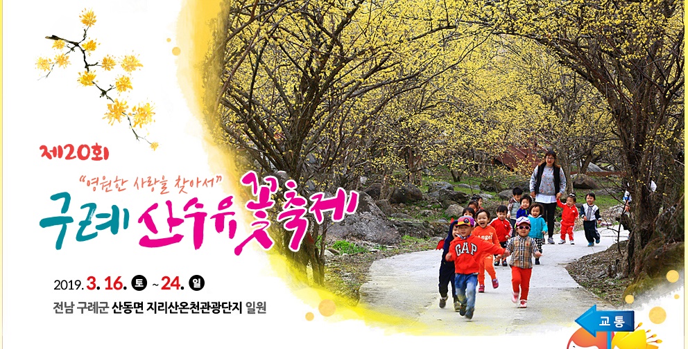 산수유 꽃이 아름다운 풍경을 자랑하는구례 산수유 마을에는 마을 전체가 노랗게 물들어서 마치 한 폭의 그림 같은 농촌의 풍경을 연상하기도 한다. 매년 산수유 꽃이 절정을 이루는 3월 중순 경부터 산수유마을을 비롯한 지리산온천관광지와 산수유 사랑공원 일원에서 ‘영원한 사랑을 찾아서’란 주제로 '구례산수유 꽃 축제'가 열리기도 한다. 축제가 열리는 산수유마을에서는 봄을 재촉하는 산수유 꽃망울이 지리산 자락을 노랗게 물들이는 장관을 볼 수 있다. 또한 봄꽃 중에 가장 먼저 피는 것으로 알려진 산수유가 군락을 이루고 있어 해마다 상춘객들로 인산인해를 이루는 곳이다.