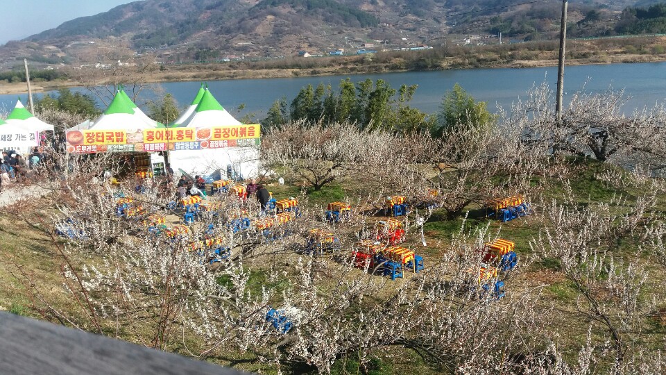 구미에서 출발하여 성서 홈플 주차장에 도착~ 오뎅집 앞에서 동행할 친구들 만나서 재잘대다가 버스 앞좌석에 앉아서 친구가 싸온 김밥도 먹고 커피도 한잔하면서 도착한 광양~ 광양에 도착하니 길게 늘어진 간이 화장실이 먼저 눈에 들어왔다. ㅋㅋ 길게 늘어진 줄을 빗겨서 셔틀버스 타지 않고 걸어서 가다보니 섬진강이 눈에 들어왔다. 꽂보다 강물~~~ 섬진강을 보면서 걸어가는 길이 참 좋았다. 가슴이 탁트이고 그냥 좋았다. 섬진강에 취해서 걷다가 매화꽃들을 찾아서 걸어올라 갔다. 온산이 매화로 가득했다. 포토존도 다양하게 많아서 친구들이랑 멋진 포즈로 찰칵찰칵 시간 가는 줄 몰랐다. 버스 탑승 시간에 맞추느라 계속 매화산을 누비고 싶은 맘을 뒤로 하고 내려왔다. 내려오는 길에 매화꽃잎으로 장식된 큰바위 앞에서 추 억 한장을 남기고 내려오면서 술도 한잔 시음하고 맛난 간식거리로 배를 채우며 내려왔다. 구례산수유마을 들어가는 길은 차량이 많아 진입이 잘 되지 않아서 하마터면 먼길을 걸어갈뻔했다. 도착한 반석마을은 정말 이뻤다. 산 수유가 노랗게 마을을 수놓고 있었고 올레길이 잘 조성되어 있어 구경하면서 걷기 좋았다. 조용하고 아름다운 마을이 관광객으로 시끄러 워 좀 미안한 맘이 들었다. 작은 음악회가 있어 산수유마을이 더 좋았다. 그다음 도착한 곳은 사랑공원이었다. 올라가는 길에 사랑을 담은 메모도 줄에 걸어 놓고 산수유꽃조형물에서 또 찰칵~ 아름다운 추억 한장을 또 담고 왔다. 재첩국은 꼭 먹고 갈려고 맘 먹고 간이 포장마차 식당에 들러 식사를 했는데 재첩 몇알이 목욕하고 있어 많이 실망스럽고 아쉬웠다. 봄날에 구경거리는 역시 꽃구경이 최고인듯~