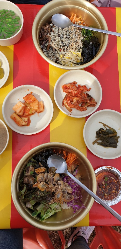 아, 그리고 매화마을축제장 내에서 먹거리도 많이 판매하고 있던데 저희도 그 곳에서 점심으로 재첩비빔밥과 꼬막비빔밥을 먹었습니다.
