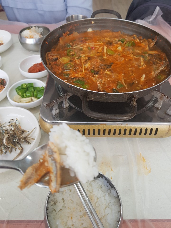 미조항 도착 후 개별중식! 멸치는 잔멸치밖에 안먹어서 엄청 고민하다가 그래도 남해까지 왔는데 남해에서 유명한 별미는 먹어봐야지 해서 결국 시킨 멸치쌈밥! 멸치맛은 꽁치맛 비슷한데 너무 작고 국물 맛은 매운탕 비슷했는데 그냥 매운탕이나 갈치조림 시킬걸 ㅠ