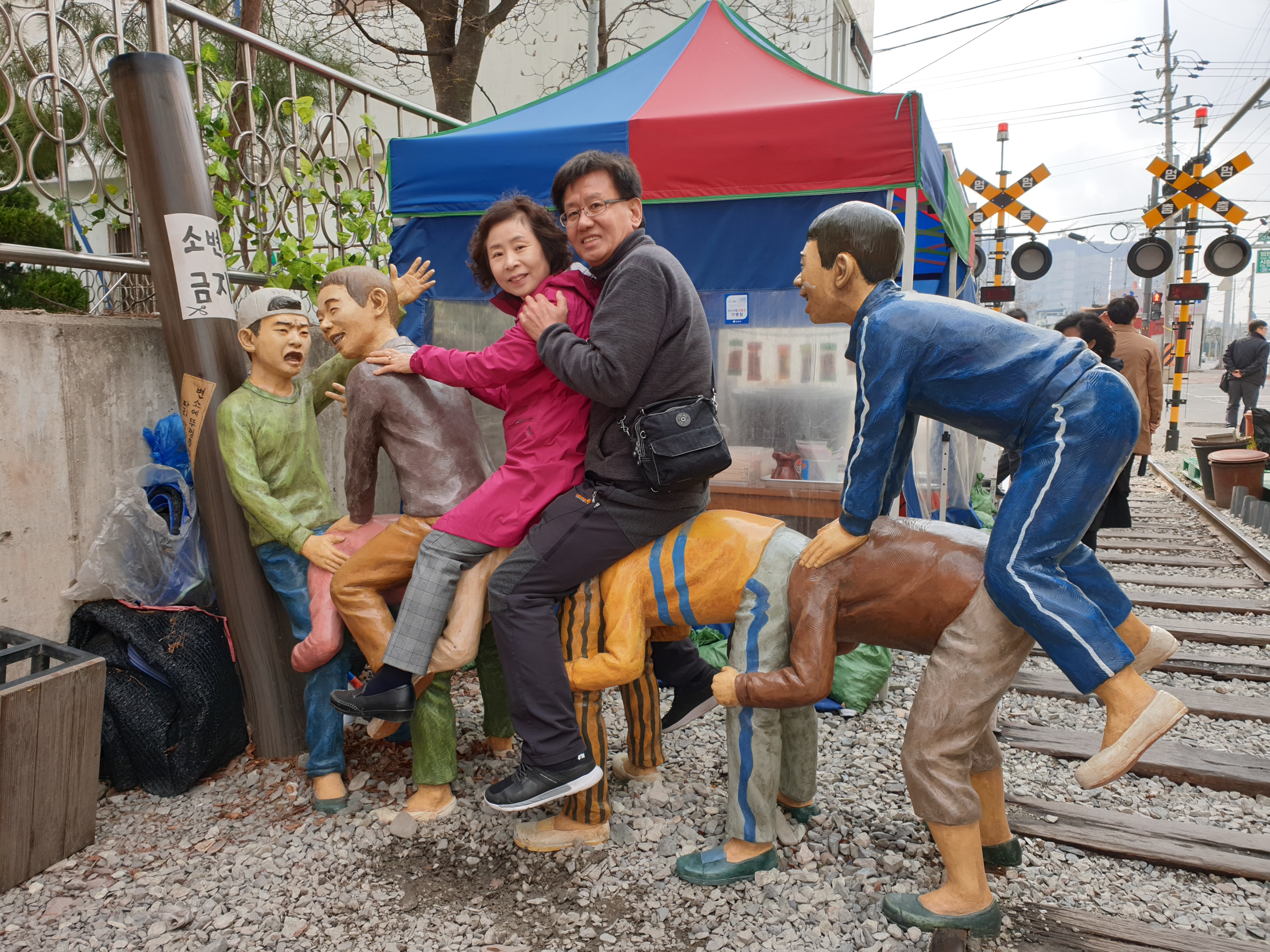 경암동 철길마을에 도착해서 35년을 같이 살아온 아내랑 서로의 마음을 확인하면서 이렇게 흔적을 남겼지요. 경암동 철길마을에서 학창시절 어렸을때 목마놀이하던 기억을 되살려서 아내랑 목마놀이를 해 봤지요. 삼성여행사를 이용하여 김수진 가이드를 동행한 2019년 3월30일(토)에 서천 동백꽃 주꾸미 축제를 참 즐겁게 다녀왔음에 깊이 감사드립니다. 2019년 3월31일 임기태 배상... !!! |
