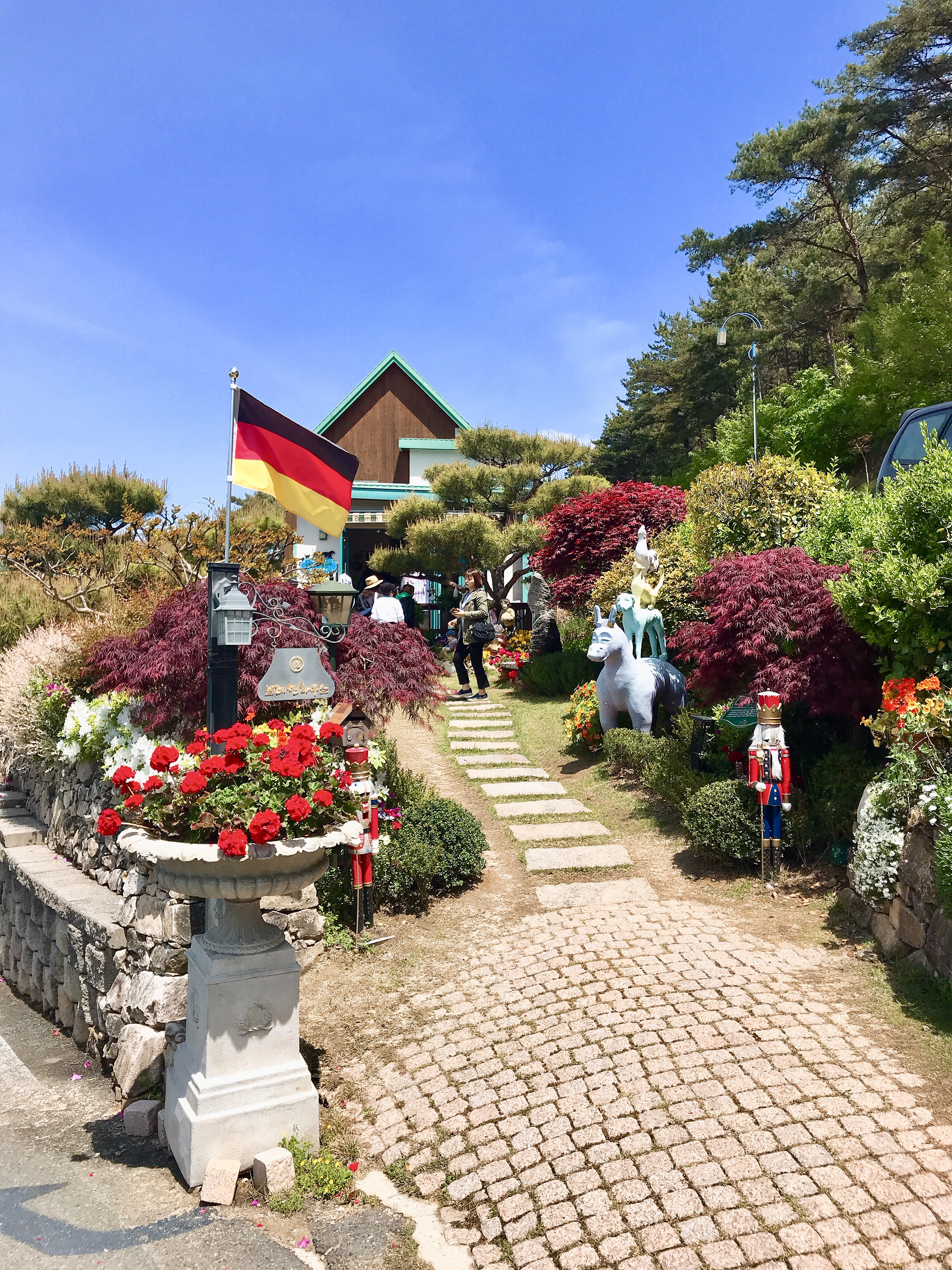 독일마을은 원예예술촌 옆에 붙어있었는데 정말 독일 느낌나더라구요. 사진 찍을 때 예쁜 집과 바다가 함께 나와서 더욱 마음에 들었습니다. 군데군데 독일식 소세지와 맥주 파는 곳도 있었습니다. 간단히 요기하기에 좋아 보였습니다.