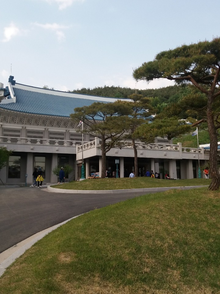 다음은 차로 5분 거리에 있는 청와대 세트장입니다 청와대 세트장은 1992년에 발간된 청와대 건설지의 내용과 사진을 발췌하여 최대한 실제와 유사한 형태로 만들었다고 합니다. 규모는 내부시설 활용을 위하여 실제 청와대의 68%로 축소하였고 2층은 대통령 집무실로 각종 드 라마와 영화 촬영공간으로 활용하고 있다고 합니다. 우리들의 어릴적 꿈은 무조건 대통령이었죠! 아들도 나와 같은 꿈을 꿀거라 생각하며 대통령 집무 실 책상에 앉아서 일하는 척, 전화 받는 척도 한 번 해 보라고 했습니다. 회의실 단상에도 한 번 서서 양팔을 들어 폼을 잡아 보라고도 했습니다. 세트장이지만 기분이 좋았 어요. 이계기로 고래의 꿈을 꾸며 자랄거라 믿어 의심치 않습니다. 이번 여행은 지자체 지원행사라 입장료가 전부 무료도 관람했습니다. 어린이날은 저는 울아들이랑 이렇게 보냈네요... 함께 한 삼성여행사 감사합니다. 예쁜 여승인 가이드님 더운데 수고 많으셨어요~