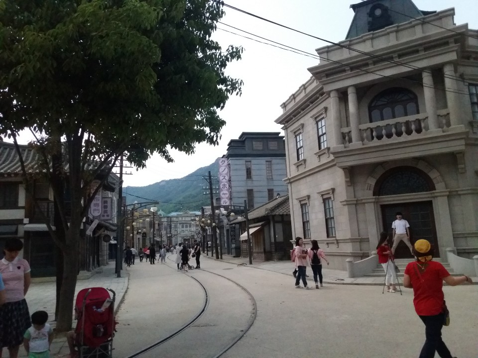다음으로 간 곳은 드라마 촬영장입니다. 1920년대에서 1980년대를 배경으로 하는 국내 최고의 특화된 시대물 오픈세트장으로 드라마 <각 시탈>,<빛과 그림자>, <서울1945>, <에덴의 동쪽>, <경성스캔들>,<시카고타자기>, <비 밀의숲>, <란제리소녀시대>, <화유기>,<미스터선샤인>,영화 <태극기휘날리며>, <인천상 륙작전>, <해어화>, <암살>,<써니>, <밀정>, <박열>, <택시운전사>, <대장김창수>, <판 도라>, <강철비> 등 190편의 영화, 드라마 광고, 뮤직비디오 등 각종 영상작품이 촬영된 전국 최 고의 촬영세트장입니다