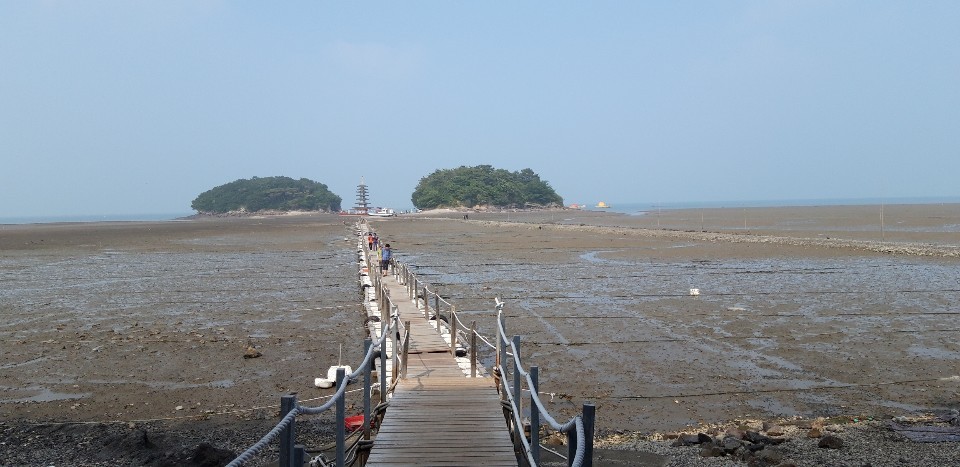 마지막으로 안면암에 갔다 물위를 걷는 기분을 느끼게 하는 안면암 부교는 우리가 갈때 다행히 썰물때 도착했다 갯벌에 빠지지 않고 갈수 있어 좋았지만 수십마리 게가 기어 다니는 모습,물고기가 벌에 들어갔다 나왔다 하는 모습, 다슬기가 수북이 나와 있는 모습,직접 갯벌 안으로 들어가서 잡는 체험은 하지 않았지만, 만져 보고 사진도 찍고 섬까지 다리를 쭈~~욱 건너 다녀올 수 있어 너무 좋았다