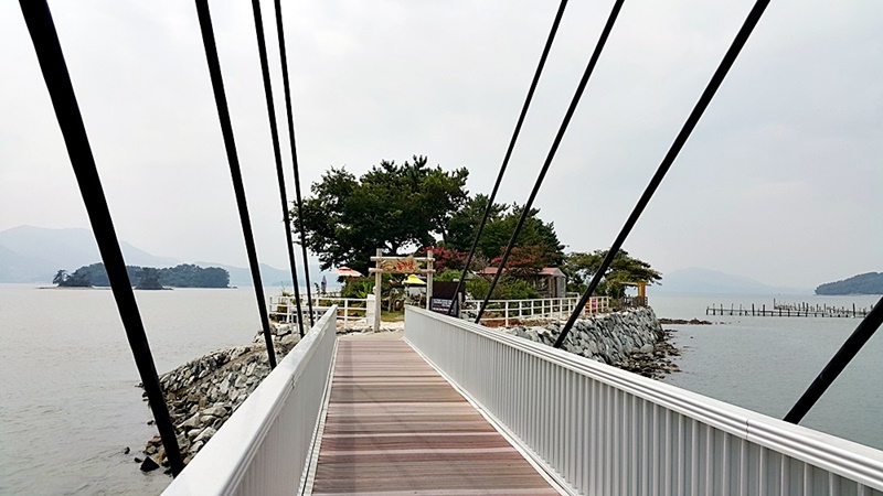 우리는 가이드의 안내에 따라 하차해서 죽방렴 어장과 농가섬카페 부근까지 돌아봤다.