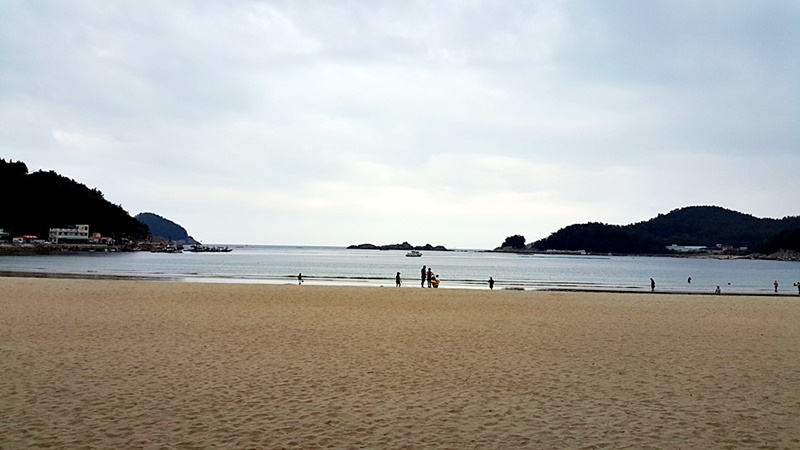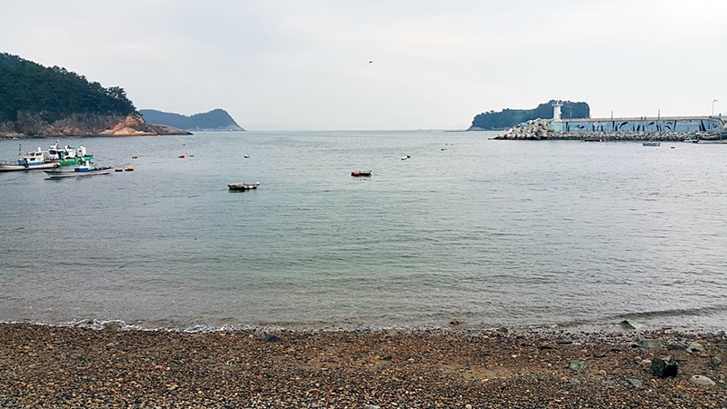 두개의 작은 섬을 연결하여 만든 작은 항구인 향도항을 끼고 모래가 아닌 파도에 풍화된 동그랗고 부드러운 모양의 자갈이 해안가의 바닥에 깔려 있는 몽골해변의 모습을 볼 수 있다.  마침 연인으로 추측되는 분이 데이트중이었는데 가까이서 보니 40대 중반으로 보이는 한국남자와 20대 중반으로 보이는 동남아 여인이었다. 껴안고 얼굴을 부비고 야단이었다. 우리부부한테도 저런 시절이 있었을까?  나이차는 있어도 오래오래 잘 살아야 할텐데~~