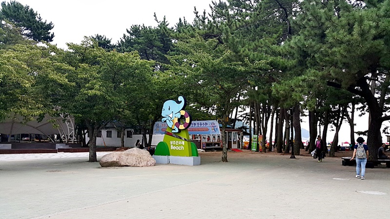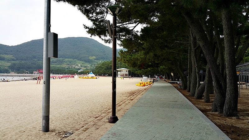 우리는 별도로 해수욕 준비를 해오지 않아서 그냥 해변가 송림아래를 따라 잠시 산책을 한뒤에 입구에 있는 편의점에서 핫도그를 사서 평상에 앉아서 먹으며 시간을 보냈다. 해안가에서 휠링하다가 차로 돌아가는 길에 핫도그 하나를 더 사서 가이드에게 드리니 잠시 뒤에 잡수시겠다고 한다. 그 이유를 잠시뒤면 알 수 있을거라고~~??