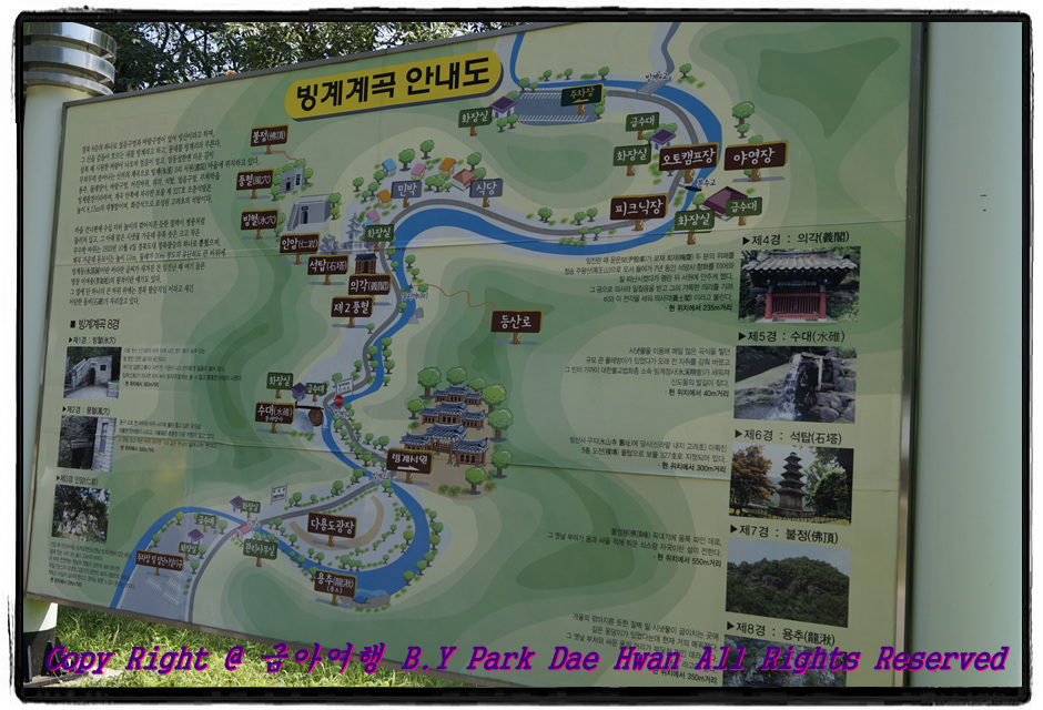 안녕하십니까? 지난 주 토요일인 08월 17일에 대구삼성여행사를 통해 의성을 여행하였던 "박 대 환" 입니다. 올 2월 해인사 다녀온 이후 약 6개월만에 의성에 다녀왔습니다. 사실 저는 혼자서 국내 이 곳 저 곳을 많이 다녀보았지만 의성은 개인적으로 가자니 대중교통이 애매하여 한 번도 가본적이 없었습니다. 대구삼성여행사 홈페이지에 가끔씩 방문하곤 하는데 마침 의성상품이 있었고 마늘소스육회비빔밥 식사제공 + 마늘빵만들기체험까지 해서 24,900원이라는 저렴한 금액으로 여행을 할 수 있는 상품이었던지라 주저하지 않고 바로 예약하여 다녀왔습니다. 그럼 본격적으로 여행기 시작해보겠습니다..^^ 08시35분경에 대구 법원건너 농협 탑승장에 도착하였습니다. 도착하니 드림관광 7984호가 대기중이었습니다! 2월달에 해인사 + 합천영상테마파크 + 청와대세트장 갔을 때에도 이 버스를 이용하였는데 이번에도 이 버스를 이용하게 되었습니다. 또한 가이드님도 2월달에 삼성여행사 통해 여행떠났을 때 가이드님으로 수고해주셨던 여승인 가이드님께서 수고해주셨습니다..^^ 버스 내부 입니다. 제가 탄 버스는 08시51분경에 대구법원 건너 농협 탑승장을 출발하였습니다. 이 날 의성여행 코스에 버스가 만석이었던지라 지정된 좌석에 앉았습니다..^^ 저는 혼자서 여행을 왔는데 4번석 즉, 가이드님 옆자리에 앉게 되었습니다. 여행사 통해 여행을 하면서 가이드분이 앉는 오른쪽 맨 앞좌석에 앉는 경우가 거의 없는데 이번에 처음으로 앉게되는 행운을 누려보았습니다 ㅎㅎ 앞자리에서 보는 풍경이 예술이었습니다..^^ 이후 현대백화점, 광장코아, 성서홈플러스 탑승장까지 모든 승객이 탑승한 후 가이드님께서는 본격적으로 일정안내를 해주셨습니다. 이 날 운행은 드림관광 박호상 승무사원님께서 수고해주셨습니다..^^ 삼성여행사를 통해 여행을 떠나게 될 경우 받게되는 뺏지 용도 입니다. 이 뺏지의 용도는 가이드님이 삼성여해아 통해 여행떠나는 고객분들을 찾는데도 용이한 GPS 기능이 있으며 입장료가 있는 관광지에서는 바로 통과가 가능한 하이패스 기능이 있는 유용한 뺏지입니다. 대구 법원건너 농협 출발한지 44분만인 09시35분에 중앙고속도로 춘천방향에 있는 동명휴게소에 도착하였습니다. 이 곳에서 약 20분간 휴식한다는 가이드님의 멘트를 듣고 하차하였습니다..^^ 동명휴게소에 휴식하면서 담아본 드림관광 7984호 입니다..^^ 출입문쪽에 붙어있던 "빙계계곡, 사촌가로숲 여행은 언제나 #삼성여행사"가 붙어있었습니다..^^ 저도 SNS를 자주하는 편인데 삼성여행사 여행한 게시물을 올릴때에 해쉬태그로 필히 #삼성여행사 넣어서 게시물 올리겠습니다 ㅎㅎ 휴게소에 왔으니 휴게소하면 제일 먼저 떠오르는 호도과자를 하나 사 먹어보았습니다. 갓 구운 호도과자는 언제먹어도 맛있습니다! 대구 출발한지 1시간53분만인 10시44분에 의성 빙계계곡에 도착하였습니다. 12시20분까지 다시 버스에 탑승하라는 안내를 듣고 하차하였습니다. 의성은 컬링의 고장이기도 하며 또한 경상북도 중심부에 위치해있습니다. 의성군은 서울로부터 320km, 부산 216km, 대구 73.5km 거리에 위치하고 있으며 농업을 기반으로 하고 있는 인구 7만의 기초지방자치단체 입니다. 면적은 1,176제곱km로 경상북도 전체면적의 6.2%를 차지하고 있습니다. 빙계계곡은 경북 8승의 하나로 얼음구멍과 바람구멍이 있어 빙산이라 하며, 그 산을 감돌아 흐르는 내를 빙계라 하고 동네를 빙계리라 부릅니다. 삼복 때 시원한 바람이 나오며 얼음이 얼고, 엄동설한엔 더운 김이 무럭무럭 솟아나는 신비의 계곡입니다. 빙혈, 풍혈, 인암, 의각, 수대, 석탑, 불정, 용추가 빙계8경 입니다..^^ 빙계리의 역사는 해동지도에 보면 읍치 남쪽에 위치한 빙산면에 빙혈이 보인다고 적혀있었습니다. 현재는 춘산면이 과거에는 빙산면에 해당되었습니다. 그 만큼 이 곳의 이름이 높았다는 것을 알 수 있습니다. 빙계리는 "개울에 얼음이 언다"는 뜻으로 붙여진 이름입니다. 륵두산에서 시작해 쌍계천으로 흐르는 시내의 골짜기가 빙계 입니다. 빙혈로 이동하는 길에 담아본 무지개다리쪽에 있는 빙계폭포 입니다. 이 날 날씨가 더웠는데 보기만해도 시원합니다..^^ 빙혈 입니다. "동국여지승람"에 쓰기를 "빙산은 의성현에서 동남쪽으로 40리 지점에 있으며 빙산의 큰 바위 밑 돌구멍이 있다. 이 것을 빙혈이라 하는데 높이가 3자, 넓이자 4자 반이다. 입하가 지마녀 얼음이 얼기 시작해 아주 더우면 얼음이 딱딱하게 되고 장마가 들면 얼음이 풀린다. 봄, 가을로 춥지도 덥지도 않으며 겨울에도 따뜻한 기운이 봄과 같다"고 나와있습니다. 산기슭의 바위 아래 너덧 명이 들어설 수 있는 방 한 칸 만한 넓이의 공간입니다. 입춘이 되면 찬 기운이 나고 한 여름엔 얼음이 얼어있습니다. 입추가 지나면 차차 녹아 동지에는 볼 수 없고 훈훈한 바람이 나옵니다..^^ 빙혈내부에 들어와서 담아본 사진입니다. 이 곳에서 에어컨보다 더 시원한 바람이 나옵니다..^^ 풍혈 입니다. 동구 도로 변 바위와 바위 사이에 뚫린 좁고 깊은 곳으로써 여름엔 찬 바람이 나오고 겨울철에는 더운바람이 나옵
