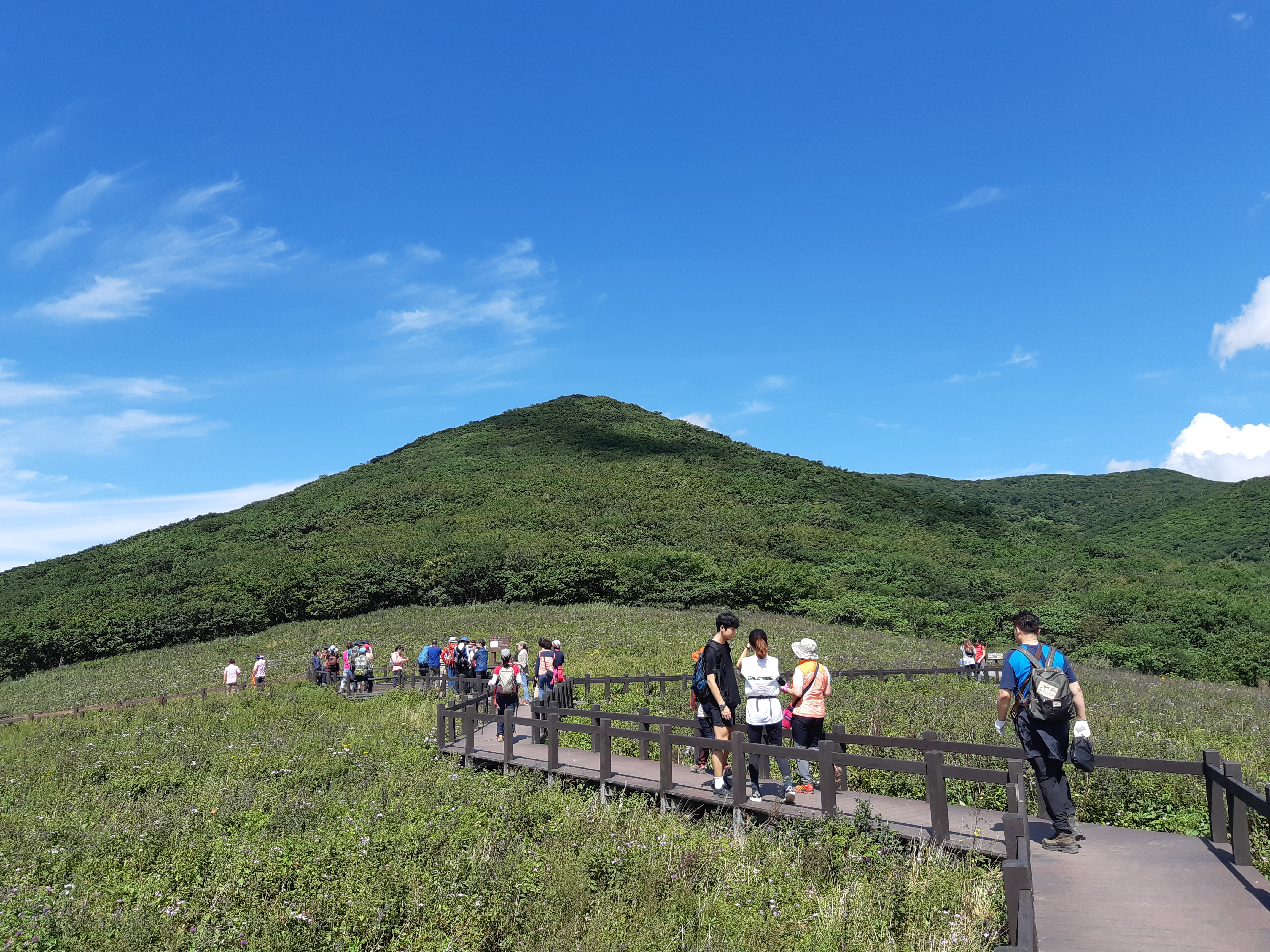 8월 31일에서 9월 1일까지 곰배령+속초 1박 2일을 신청하여 홈플러스앞에 7시 30분까지 도착해보니 낯이 익은 가이드님과 기사님이었습니다. 얼마 전에 1탄인 강진+해남 여행시 만났던 분들이었습니다. 남편과 전 반갑게 인사를 나누고 버스에 올라 탔는데요 이런 우린 늦게 신청을 하는 바람에 뒷좌석이라서 헐레벌떡 타는 순간 모든 분들이 여자분이었고 그 많은 분에 남편 혼자 청일점이었습니다. 와 저번 여름방학이라서 가족분이 대다수였는데 이번에는 모두 여자분들 모임에서 오신 것 같았습니다 어쨋든 벌초를 하느라 엄청 막혀서 4시간여 한참을 달려서 휴게소에서 간단히 점심을 먹은 후 한국인이 꼭 가봐야 할 곳 100선에 선정된 원대리 인제 자작나무 숲 힐링 트레킹을 시작하였습니다. 편하게 걸어 올라 가니 곱고 흰 피부에 쭉 뻗은 수천 그루의 자작나무가 신기하게도 운집해 있었습니다 자작나무로 지은 오두막집 앞에서 사진도 찍고 마음껏 좋은 공기도 마시고 4시 정도에 속초 중앙 시장을 갔습니다. 울산 중앙시장과 포항 죽도시장 등 이번에 가본 시장 중 가장 규모가 크고 관광객이 많았고 호떡집과 4,000원 짜리 빵집은 줄을 서서 기다리고 있으며 닭강정도 인기가 있었습니다. 내려 가는 길에 바위로 뒤덮인 울산바위 뒤쪽을 구경할 수도 있었고 정말 멋졌습니다 그리고 파도가 바위에 부딫치면 신묘한 음곡이 들려 이 소리를 신령한 거문고 소리와 같다고 하여 지으진 영금정 바다에서 추억을 남기고 숙소인 곰배령으로 저녁을 먹고 숙소로 출발 하였는데 밤인지라 어두운데 끝없이 산자락을 올라 가도 차한대도 가로등도 없는 골짜기를 3.8선을 지나서 계속 올라 가니 정말 사진에나 나올법한 이쁜 펜션이 숙소로 기다리고 있었고 펜션 식당에서 바베큐 삼겹살과 목살 정말 맛있었습니다. 주인장의 손맛이 뛰어 나며 신김치와 지담은 것 취나물 등 어느 것 하나 맛깔스럽지 않은 것이 없을 정도 입니다. 드디어 아침 곰배령을 향해 왕복 10.2킬로 트레킹을 시작하였는데요. 하루에 300명만 입산을 허가하고 그곳에서 숙박을 하면 제외가 되며 반드시 주민등록증을 지참해고 위에서 또 카드로 확인을 한답니다. 전국에서 가장 생존 보존이 잘되어 있다는 것이 이렇게 철저하게 관리를 하다보니 계곡에도 쓰레기도 없으며 산을 지킬 수가 있구나 싶었습니다. 올라 가는 길은 산세가 완만하고 구간이 짧으며 모두 나무들에 가리고 있어서 햇빛이 없으며 좌우로 흐르는 맑은 물 소리를 들으면서 편하게 올라 가면 됩니다 드디어 산정상에 도착하면 하늘이 뻥 뚤리는 것 기분을 느끼며 온갖 야생화들이 뽐내고 있습니다. 사진 찍느라고 정신이 없을 정도입니다. 신기한 야생화와 맑은 공기 천상의 화원 그 자체 입니다. 점심은 펜션 그 식당으로 다시 내려 와서 솜씨가인 주인장의 토종 백숙이 기다리고 있답니다. 많이 걸어서 배도 고픈 탓에 꿀맛입니다. 직접 채취한 나물과 곰취 산나물도 양봉한 꿀도 팔고 있어서 사기도 하면서 대구로 내려 오는 길은 꿀잠이었으며 평생에 기억에 남는 멋진 여행이었습니다. 10월 5일과 6일 춘천과 남이섬에 다시 예약하려고 합니다. 친절한 설명과 지도에 가이드님 정말 감사했습니다.