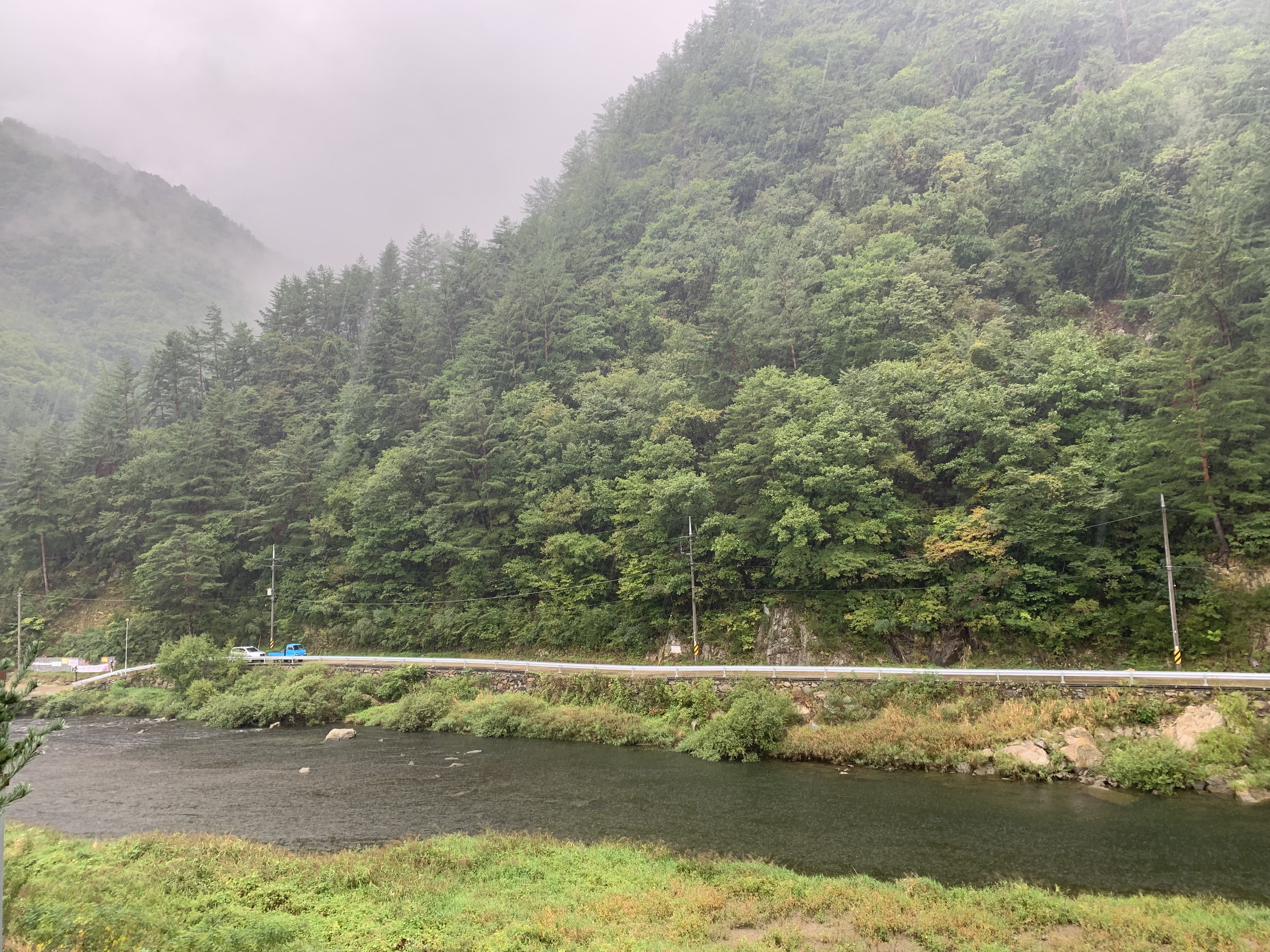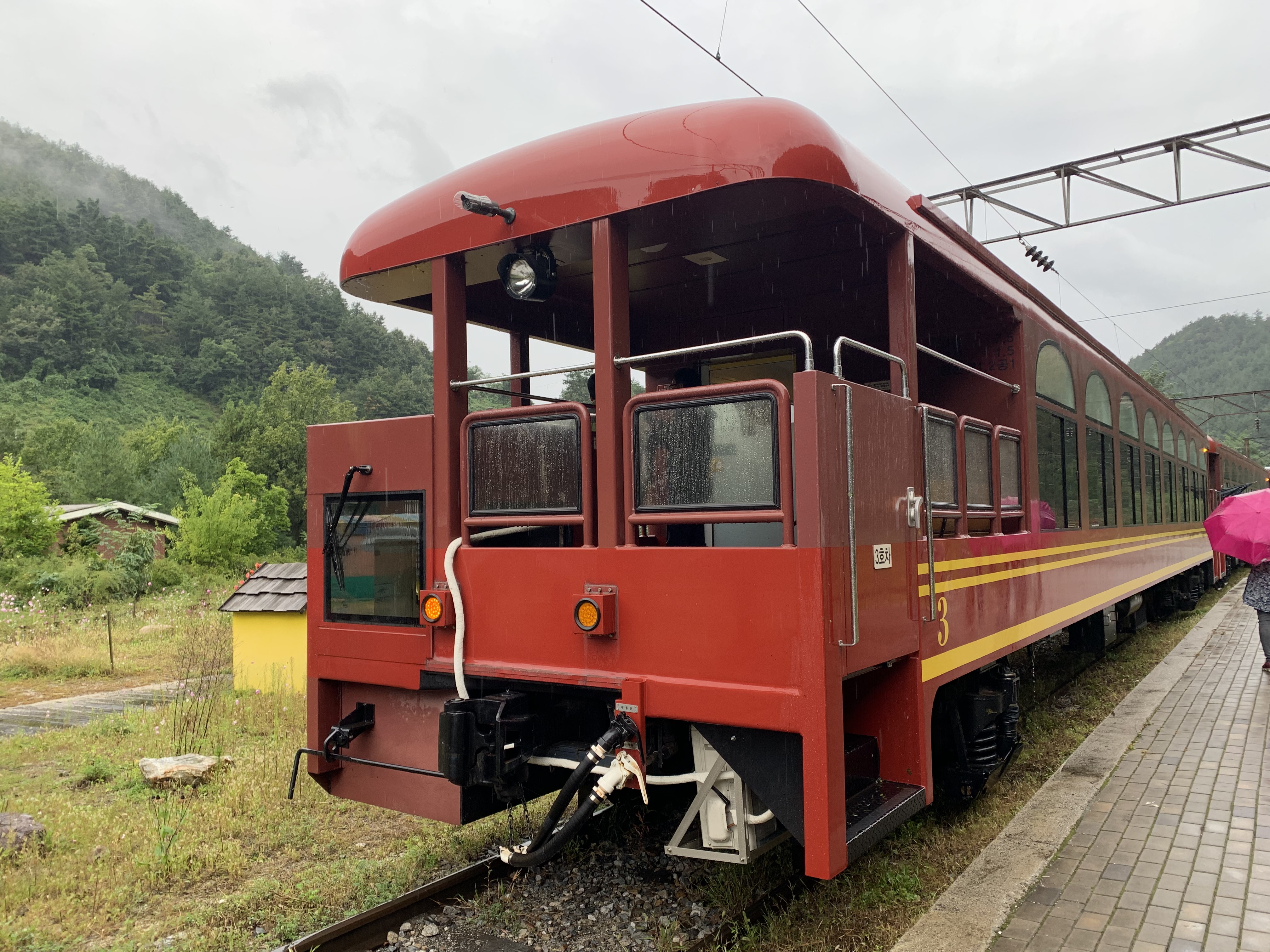 빗속을 가르며 백두대간을 누비는 협곡열차는 그림같은 자연경관을 느끼기 충분했습니다.