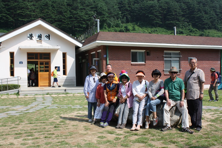 유명 관광지가 되어버린 분천역에서 우리 일행은 쉬는 시간을 이용,단체사진도 찍고 주변경치를 감상했다. 평일이라 그런지 사람이 아주 많지는 않았다. 삼성여행사를 통해온 인원은 36명.
