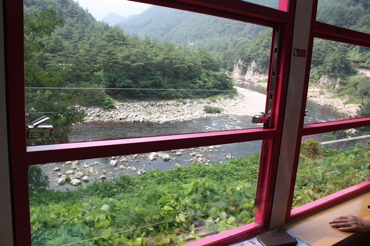 철암역까지 가는 동안 펼쳐지는 좌우 협곡의 경치에 매료된 우리들은 연신 감탄을 하며 안내방송도 듣고 중간중간 최 가이드의 설명도 들으며 풍광을 감상했다.