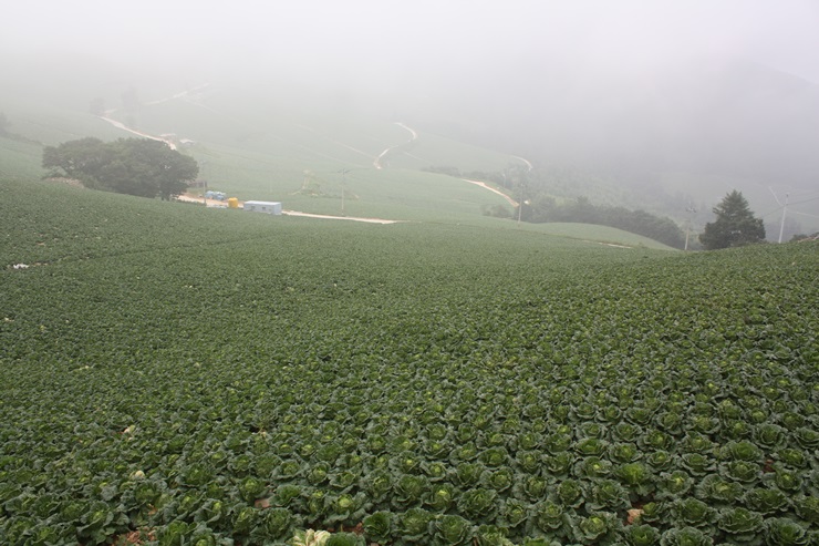 (안개속에서 본 매봉산 바람의 언덕 배추밭)