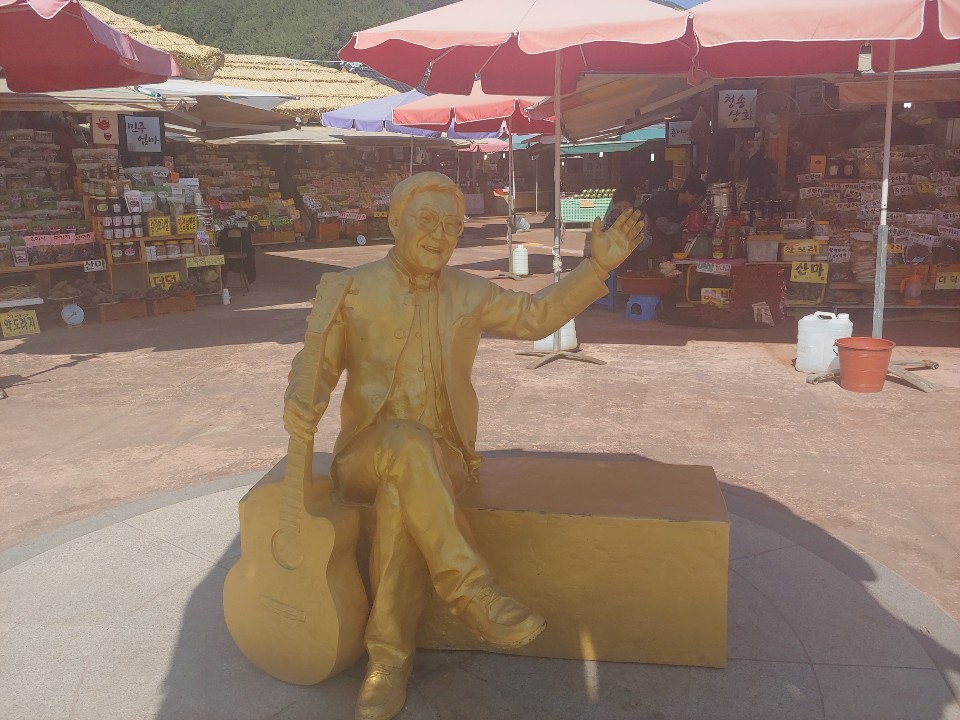 없을껀 없다는 화개장터엔 조영남씨의 동상과 시대를 거슬러올라간듯한 초가집이 드문드문보이고 왁자지껄한 분위기가 마치 축제를 연상케 하는데요~?