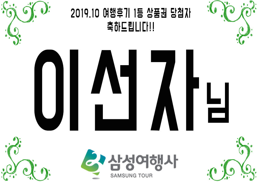 상품권은 개별 연락드리며, 영화표는 여행후기 등록 당시 연락처로 보내드립니다.