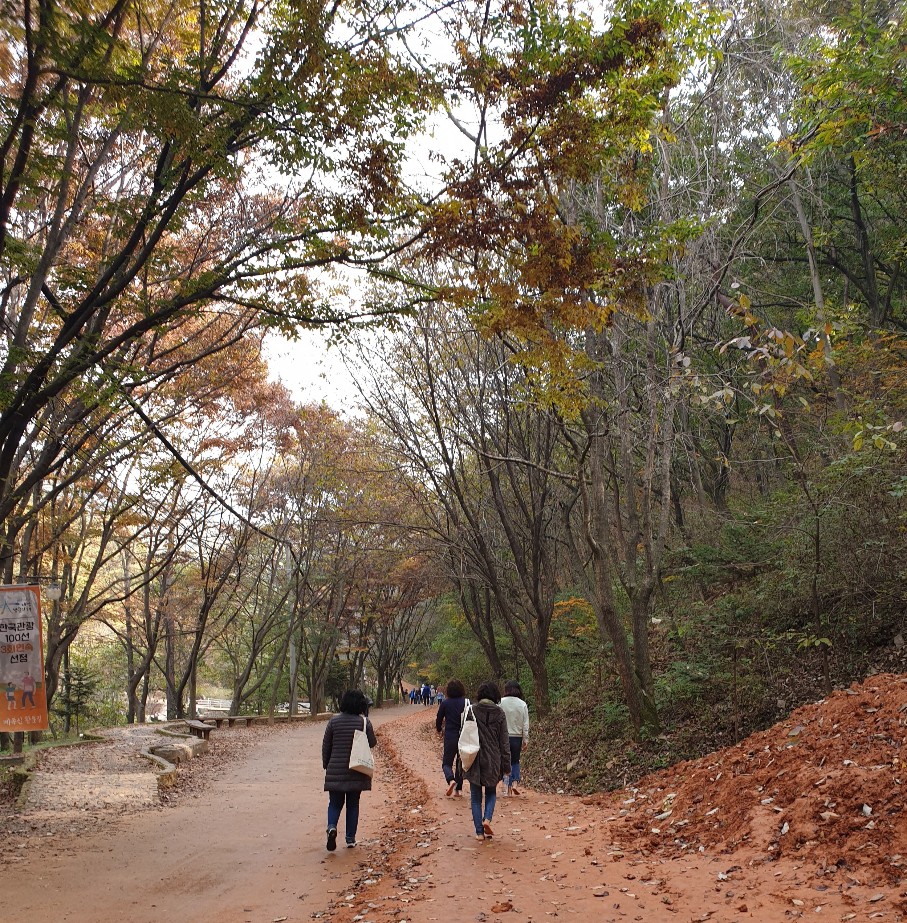 계족산 황토길 맨발 체험을 가보고 싶어서 여기 저기 알아 보던중 삼성 여행사 특가 상품을 접하게 되었습니다. 다른 여행사는 새벽 일찍 출발하여 힐링보다는 피곤한 일정이어서 망설여졌는데 삼성여행사 일정은 여유로워서 일단 좋았습니다. 지자체 예산을 지원 받아서 타 여행사보다 저럼하지만 풍경 만들기 체험이랑 보리밥 정식 까지 무료 이어서 너무 좋았어요. 친절한 대전 해설사 님께서는 대전의 많은 것을 알려 주시고자 차가 운행되는 동안 차창 밖으로 비쳐지는 대전 시가지의 이곳 저곳을 친절하게 설명해 주셨고 또 멋진 사진도 많이 찍어 주셔서 고마웠어요. 대청 호반을 지나 풍경 만들기 체험 장소에 도착하니 빛 좋은 창에 주렁주렁 곶감이 걸려 있어 보는 것 만으로도 기분이 좋고 아기 자기한 많은 도자기 작품이랑 구절초 등의 예쁜 꽃밭이 반겨 주었습니다. 모처럼 학창 시절로 돌아가서 붓 과 물감으로 채색하며 서로의 작품을 칭찬해가며 소리 좋은 풍경을 만드는 체험도 재미있었습니다. 적당히 배가 고플때쯤 도착한 식당에서는 보리밥, 청국장, 도토리 묵 등 건강 밥상으로 배를 채우며 행복했어요. 드디어 제일 기대했던 계족산 트래킹! 사랑하는 친구들과 맨발로 쫀득쫀득한 황토 을 걸으며 가을을 만끽하며 수다를 떨고 좋은 추억을 쌓았습니다. 황토길을 만들어 전 국민께 건강한 체험을 할 수 해주신 분께 새삼 감사했어요. 계족산성을 오르니 외국 못지 않게 좋은 절경을 볼 수 있어 정말 좋았는데 시간이 많이 없어서 좀 더 머무르지 못해 아쉬웠습니다. 마지막 코스는 대전의 자랑인 유성온천의 무료 족욕장에서 족욕을 하며 휴식을 즐기는 시간이 좋았고 주변의 국화꽃 전시까지 감상하며 좋은 시간을 보냈답니다. 다시 이런 기회가 된다면 또 참여하고 싶어요. 즐거운 여행있었어요.