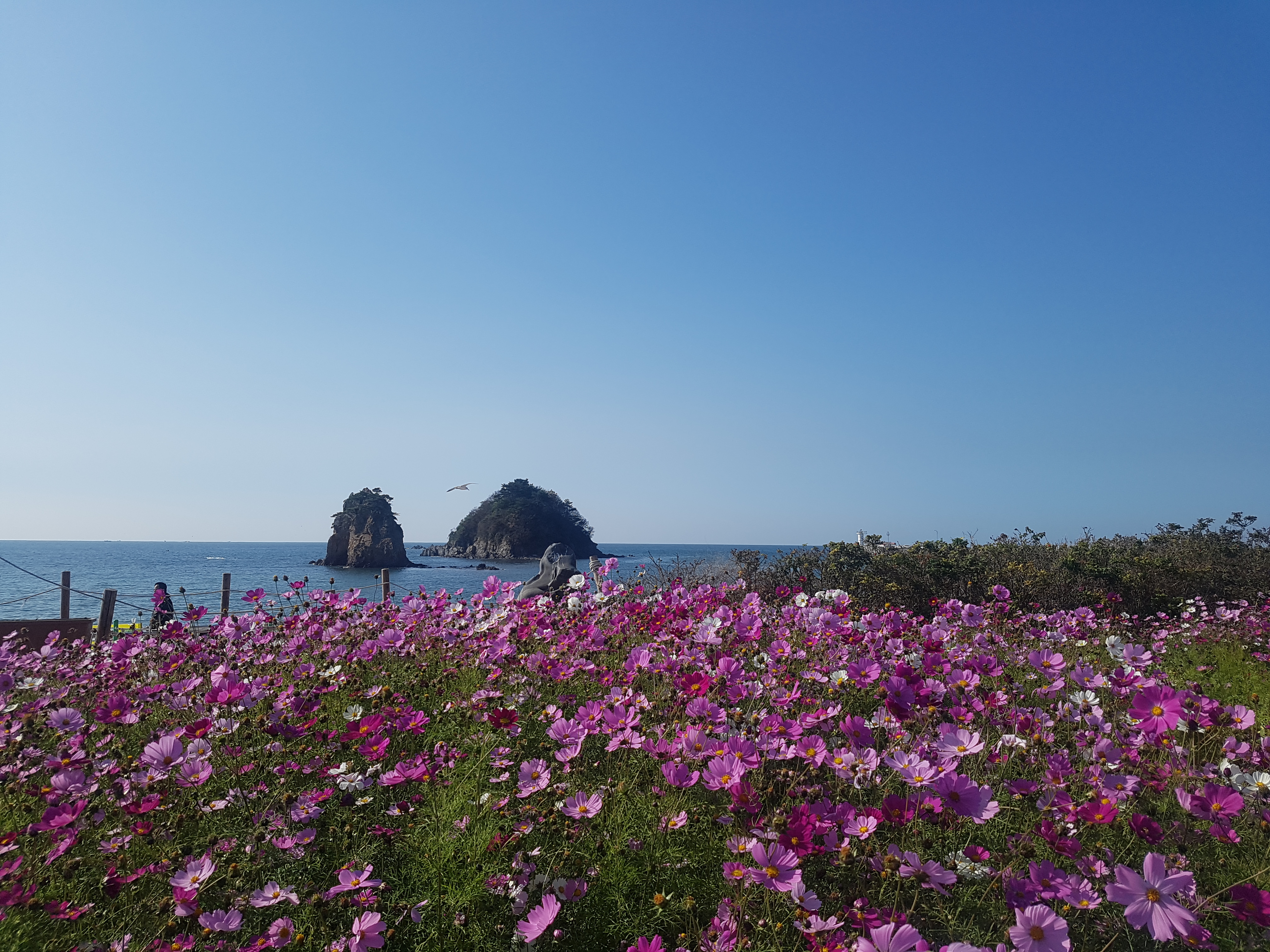 그 뒤로 태안으로 넘어가 꽃지해변에서 식사를 했습니다. 멀리서 오신 만큼 게국지는 꼭 드시고 가셨으면 좋겠네요! 간식으로 꽃게튀김도 추천드립니다~할미할아비 바위는 물때를 잘 맞춰가면 걸어서도 가볼 수 있다는데 만조시기와 겹쳐 구경만 했으나 그 경치가 너무 예뻤습니다.