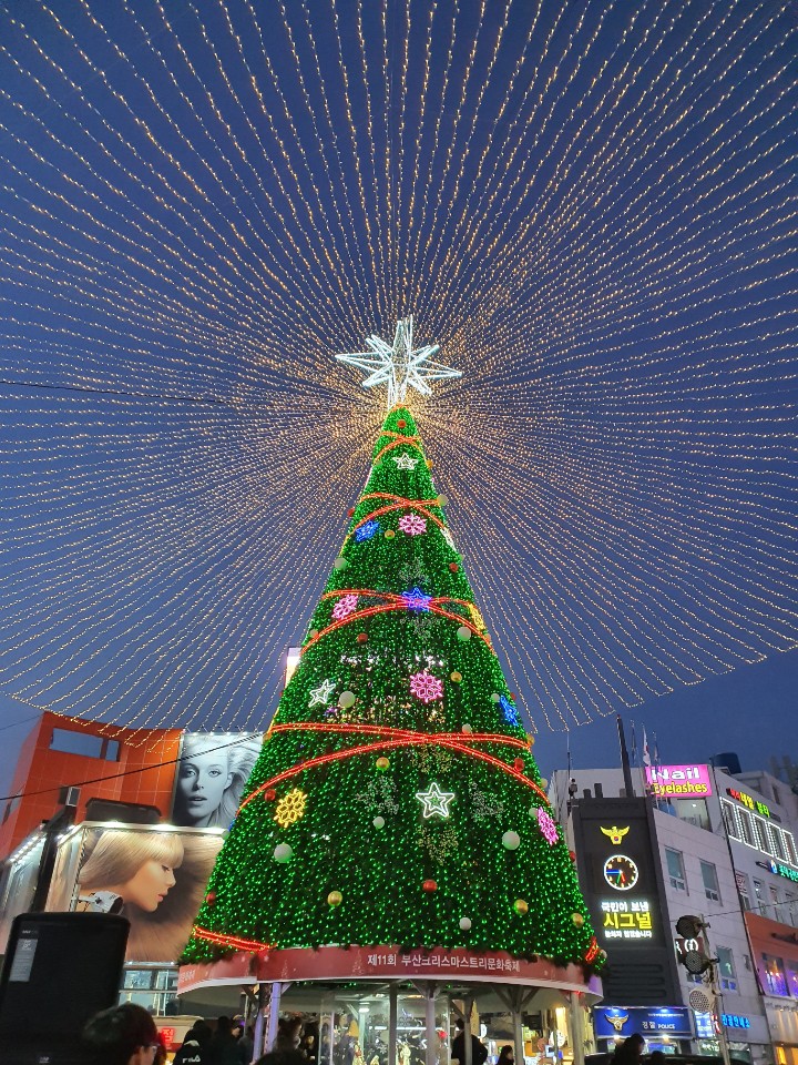 여기는 근사한 트리가 있는 여기는 두번째 코스로 부산크리스마스트리축제가 진행중인 광복동이에요!