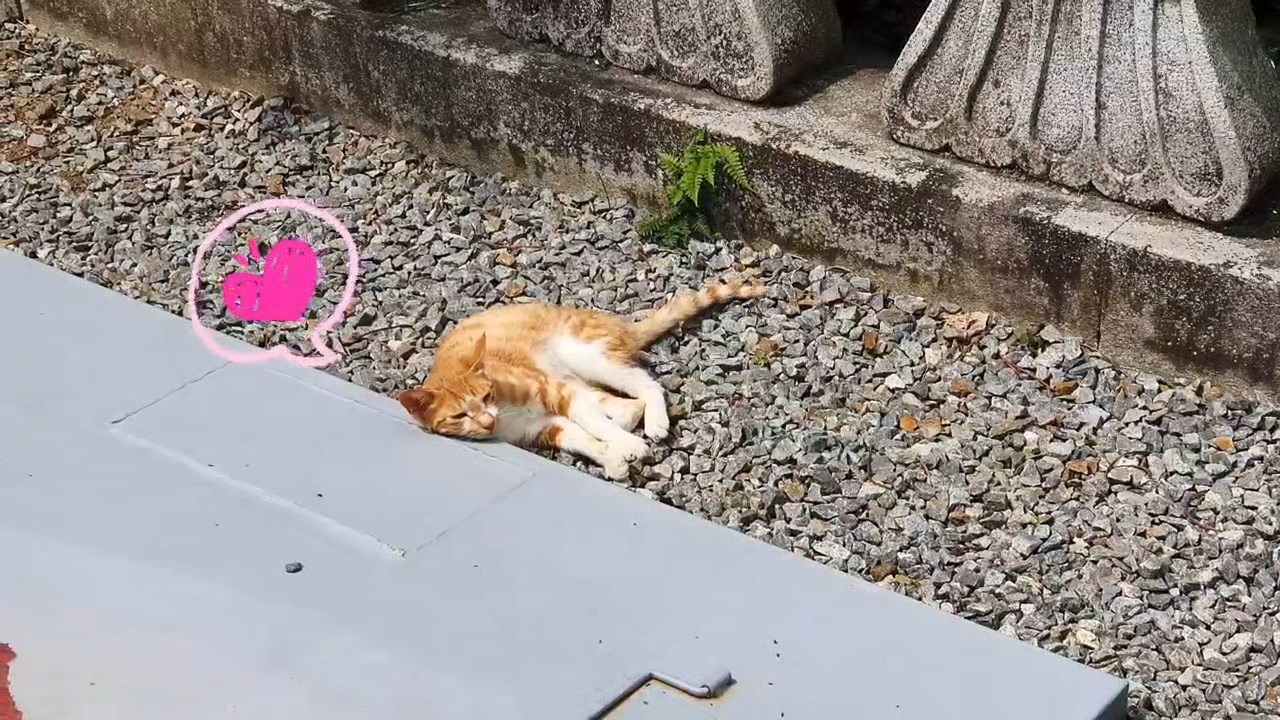 법당앞에서 재롱부리다가 뒹굴뒹굴하는 고양이 한마리가 있었다.