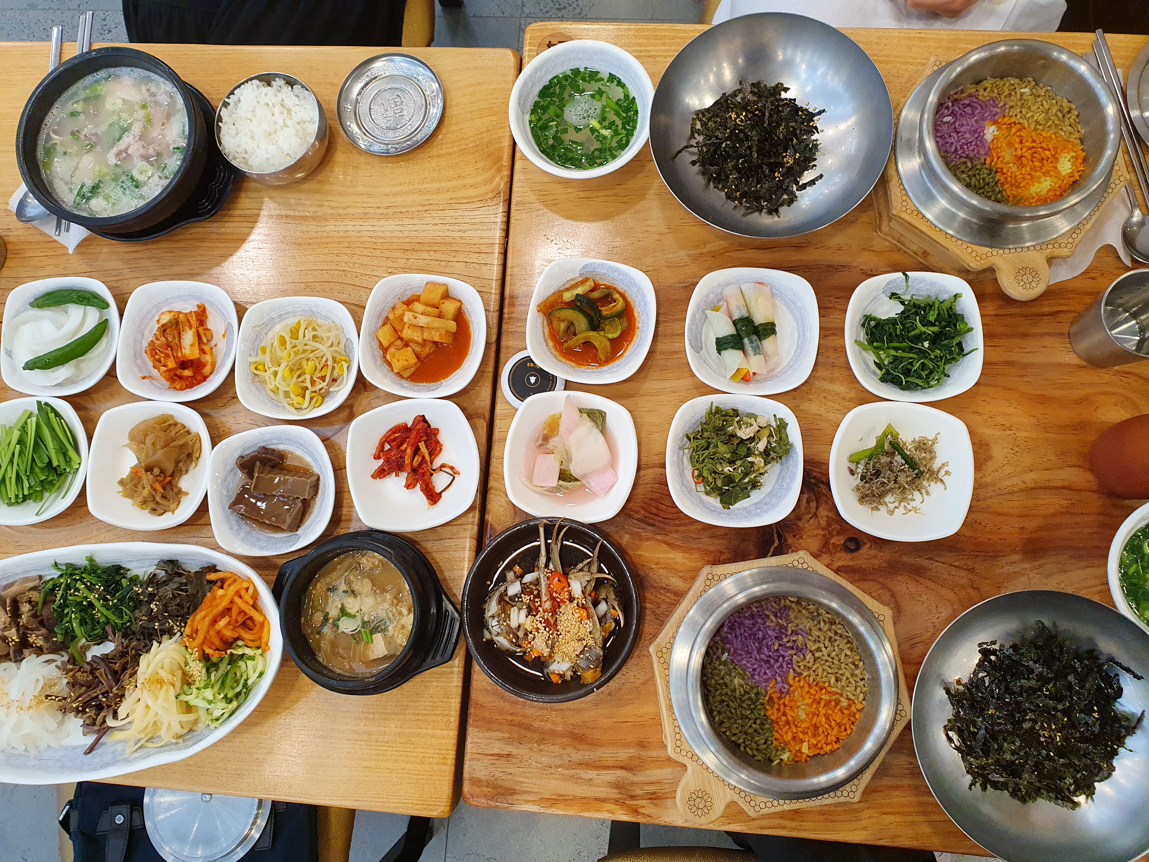 10분쯤 이동해서 화개장터에 도착했다. 제첩국이나 참게탕을 먹으려다가 마땅히 땡기는 음식이 없어서 국밥집으로 들어갔다. 일행과 함께 돼지국밥, 산채비빔밥정식을 먹었다.