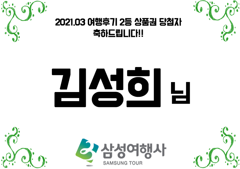 3월 여행후기 당첨자 발표를 하도록 하겠습니다!