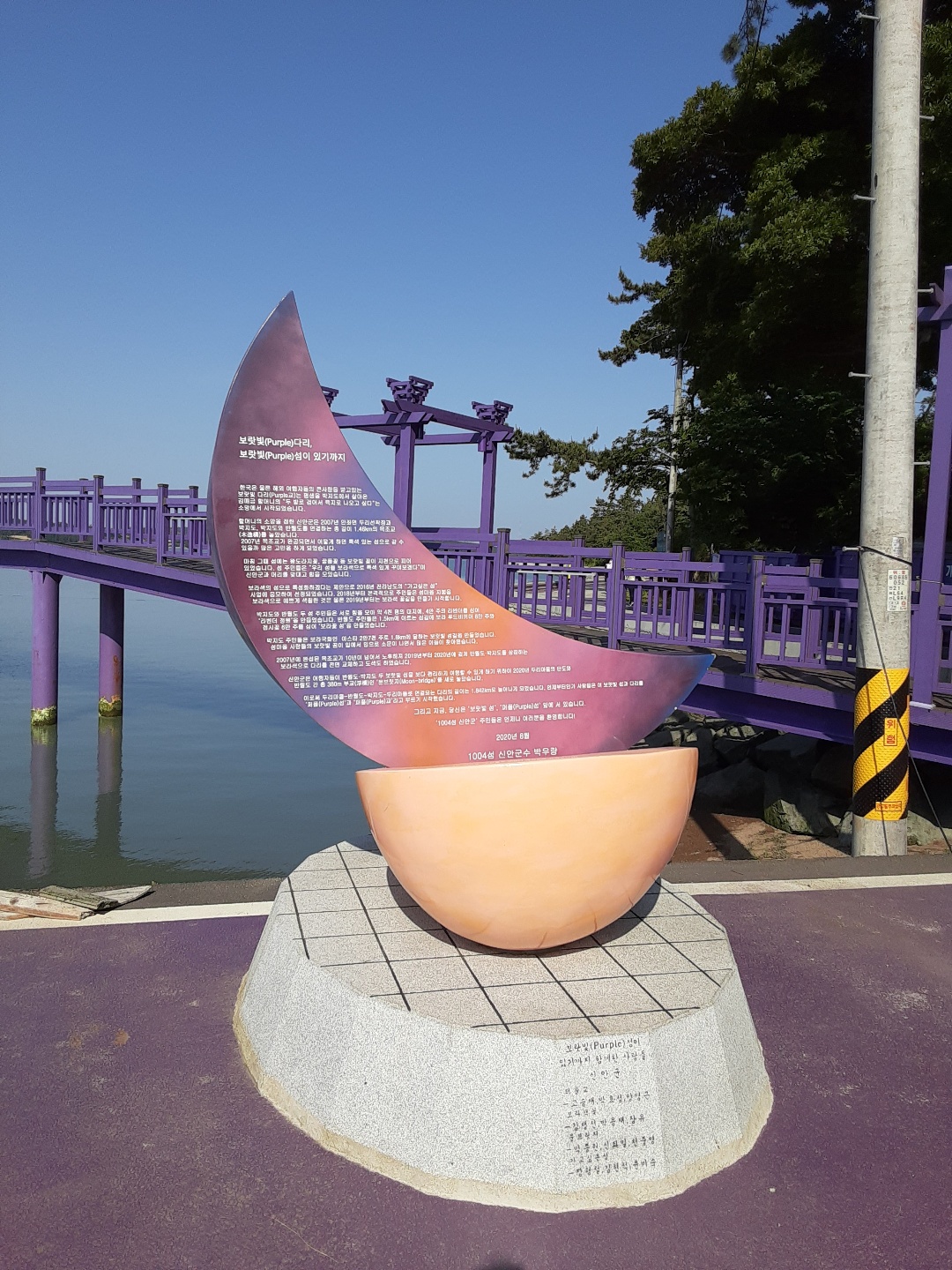보랏빛 섬의 유래가 적혀있네요 평생을 박지도에서 살아온 김매금 할머니께서 "두발로 걸어서 육지로 나오고 싶다"는 소망에서 시작되었다고 합니다