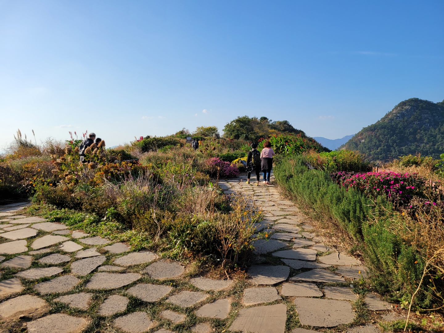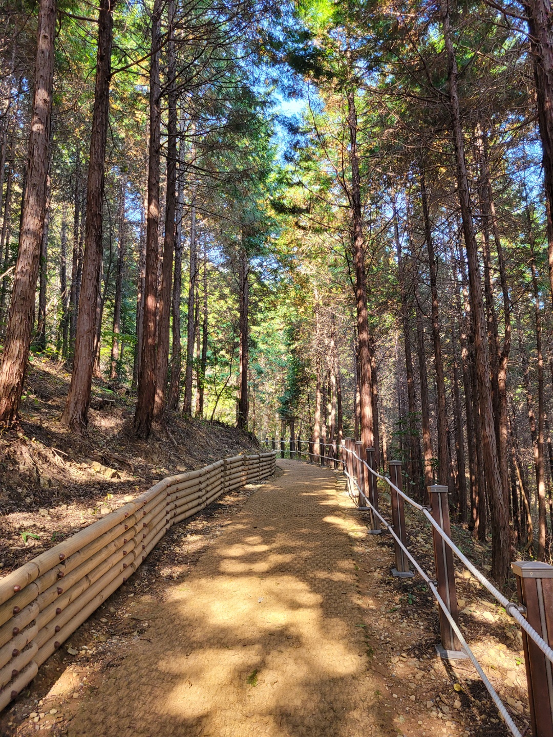 맑은 가을날씨속에 팔영산에 도착 멍석이 깔린 노르딕워킹 길을 걸으며