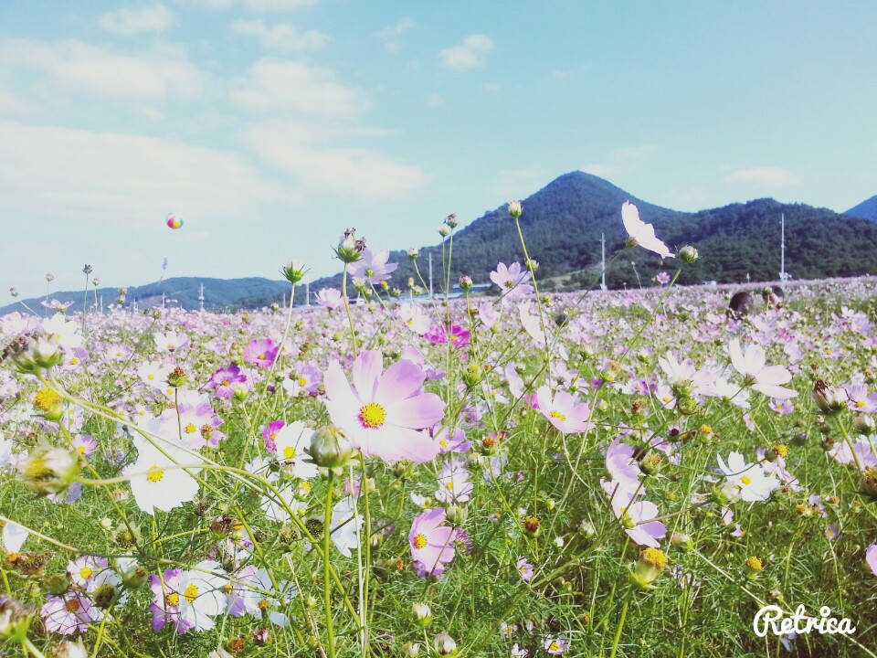 버스를 타고 한참을 달려 북천 코스모스&메밀꽃 축제에 도착하였다. 우리는 버스에서 내려서 가이드를 따라 표주박 터널(?) 에 갔다. 그리고나서 부터 각자의 시간들을 보내는 거라서 나와 친구들은 열심히 사진을찍으며 좋은 시간들을 보냈던 거 같다. 표주박터널에 표주박 뿐만아니라 수세미와 여주도 간간히 보였던 거 같다. 그래도 이곳의 하이라이트는 무엇보다도 코스모스!!!!!!!!!