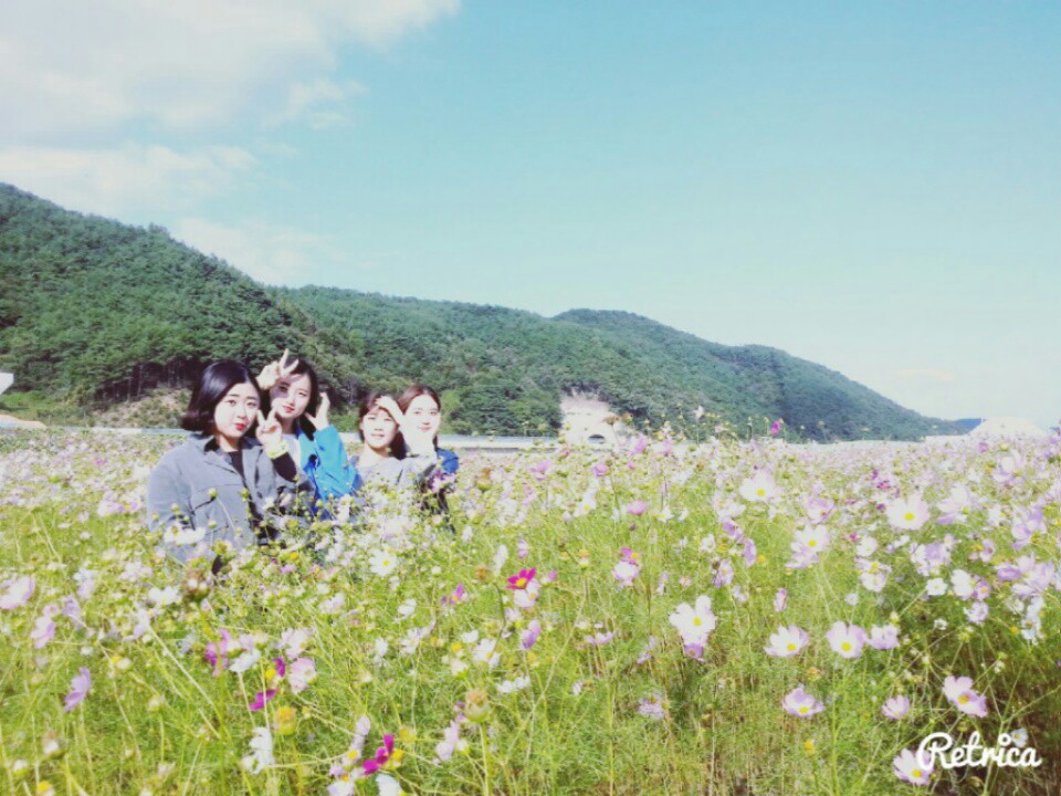 코스모스와 함께 사진을 찍으면 진짜 너무나 예쁘다. 단지 바람이 많이 불었던 거 말곤 너무나 좋았던거 같다. 우리가 한참 사진을 찍고 있다가 한 가이드 분께서 단체 사진을 찍어준다고 해서 단체사진도 코스모스도 다 나오고 예쁘게 잘 찍어주셔서 완전 감동 ㅎ