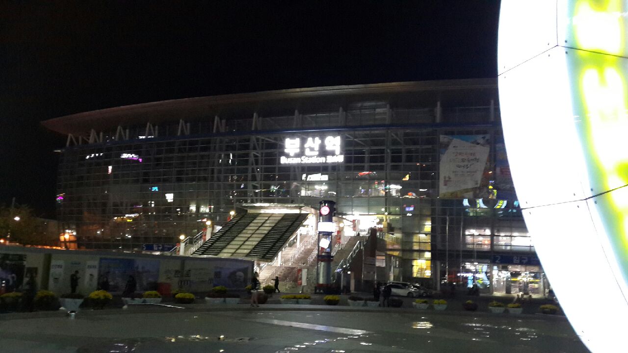 강원도는 부산보다 많이 춥다고 따뜻하게 옷입히고 저녁 든든히 먹이고 밤에 도착한 부산역!