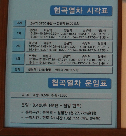 오늘의 여행은 ![]() 태백 해바라기 축제와 협곡열차 ~ 출발 ^^ ![]() 삼성여행사 일정표 ![]() 태백시 여행 팸플릿 ![]() ![]() ![]() ![]() 2013.8.06.내일신문 분천역 도착해서 첫 기차는 10시 20분 출발 ![]() 분천역 도착하는 모습 분천역 도착해서 사진 찍고 음료수 한 잔 ~ 잠시후 기다리던 협객 열차가 들어옵니다. ![]() 협곡열차1 ![]() 협곡열차2 협곡열차3 열차에 올라타고 창가에 앉아 협곡을 감상할 준비를 합니다. ![]() 양원역 도착 ![]() 승부역 도착 ![]() 철암역 도착 황지연못,태백 해바라기 축제,매봉산 바람의 언덕,태백 체험공원 여행후 삼성여행사에서 제공된 된장찌개로 저녁 식사후 다시 철암역에서 대구로 고고씽~ ![]() 황지 연못 낙동강의 발원지 황지 연못 "낙동강 천삼백리 예서부터 시작되다." 제9회 태백 해바라기 축제(구와우마을) ![]() 매봉산 바람의 언덕 - 해발 1272m 그리고 풍력발전기 태백체험공원 - 석탄에 대한 이해, 광부들의 삶을 돌아볼 수 있는 교육의 장 지금까지 달려온 순서대로 올렸습니다 : : 이번 여행이 남긴 장면들..., ![]() ![]() ![]() ![]() ![]() |