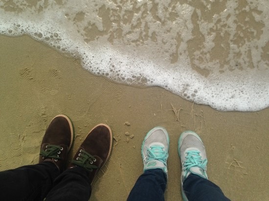 누리마루 아래 계단쪽으로 내려가니 산책로와 바다를 좀 더 가까이 볼 수 있는 기회~! 이번 여행의 딱 두장있는 전신샷입니다. - photo by 샛별가이드님ㅎㅎㅎ 동백섬 산책의 끝에는 해운대~! 모래사장에 놀러갔다가 사진이라도 남기려 발사진 ㅎㅎ
