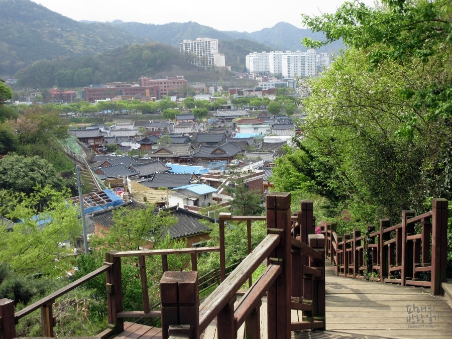 ![]() 오목대에서는 사실 키 큰 나무들땜에 잘 보이지 않아 반대편 산책로에서 그나마 (한옥)전망이 보였어요.