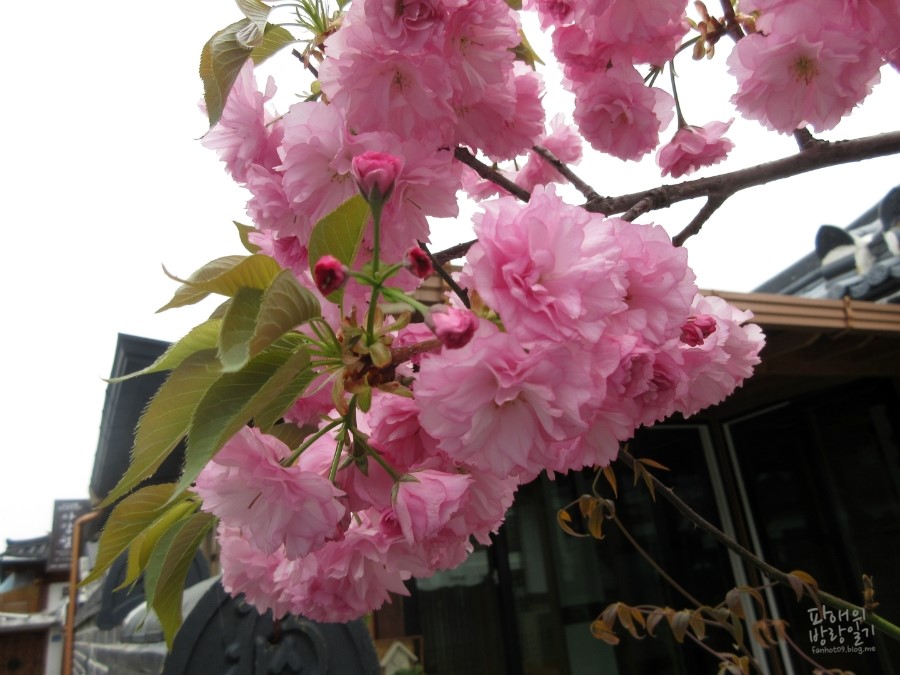 그리고 한옥마을 골목골목 겹벚꽃(겹쳐진 벚꽃)의 향연 일반 벚꽃(사쿠라)가 지고 일주일 정도 지나면 활짝 피어줍니다.