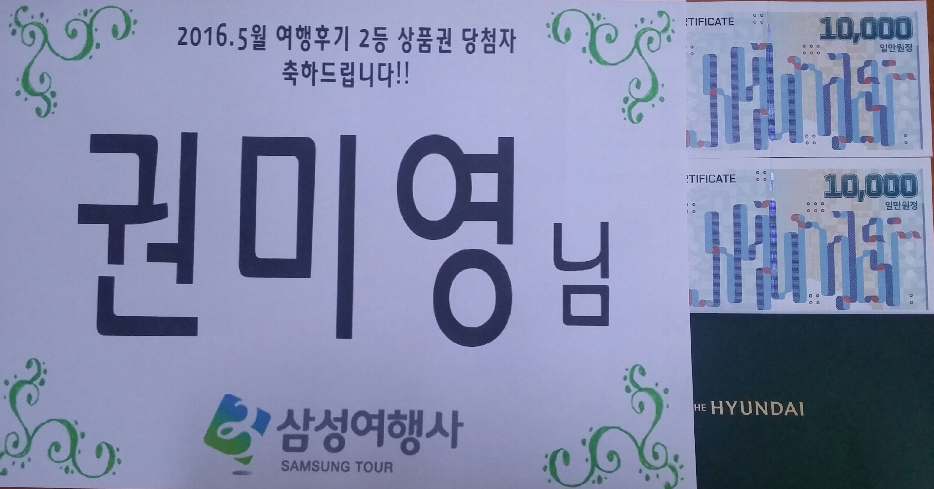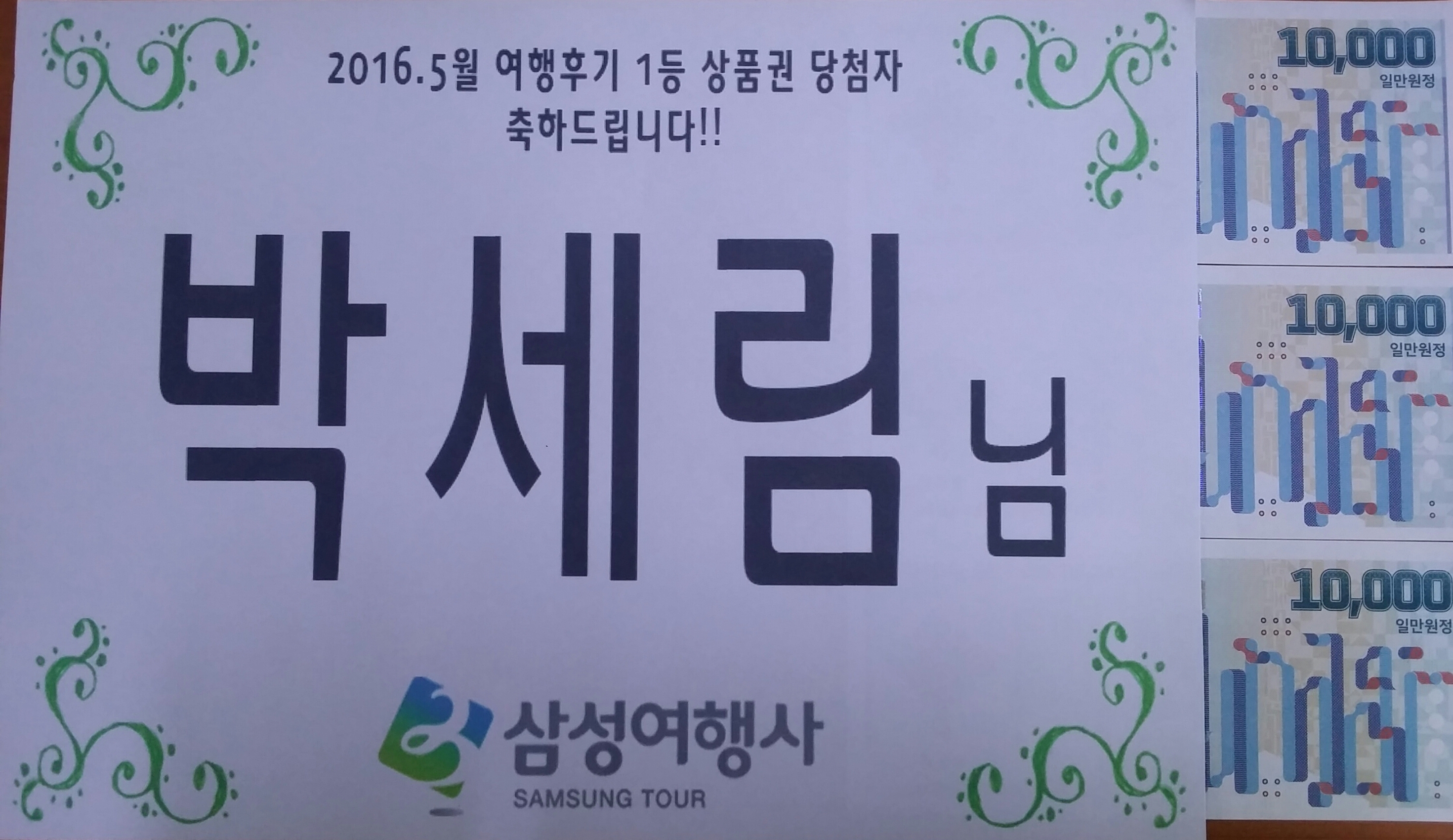 5월 여행후기 당첨자입니다!