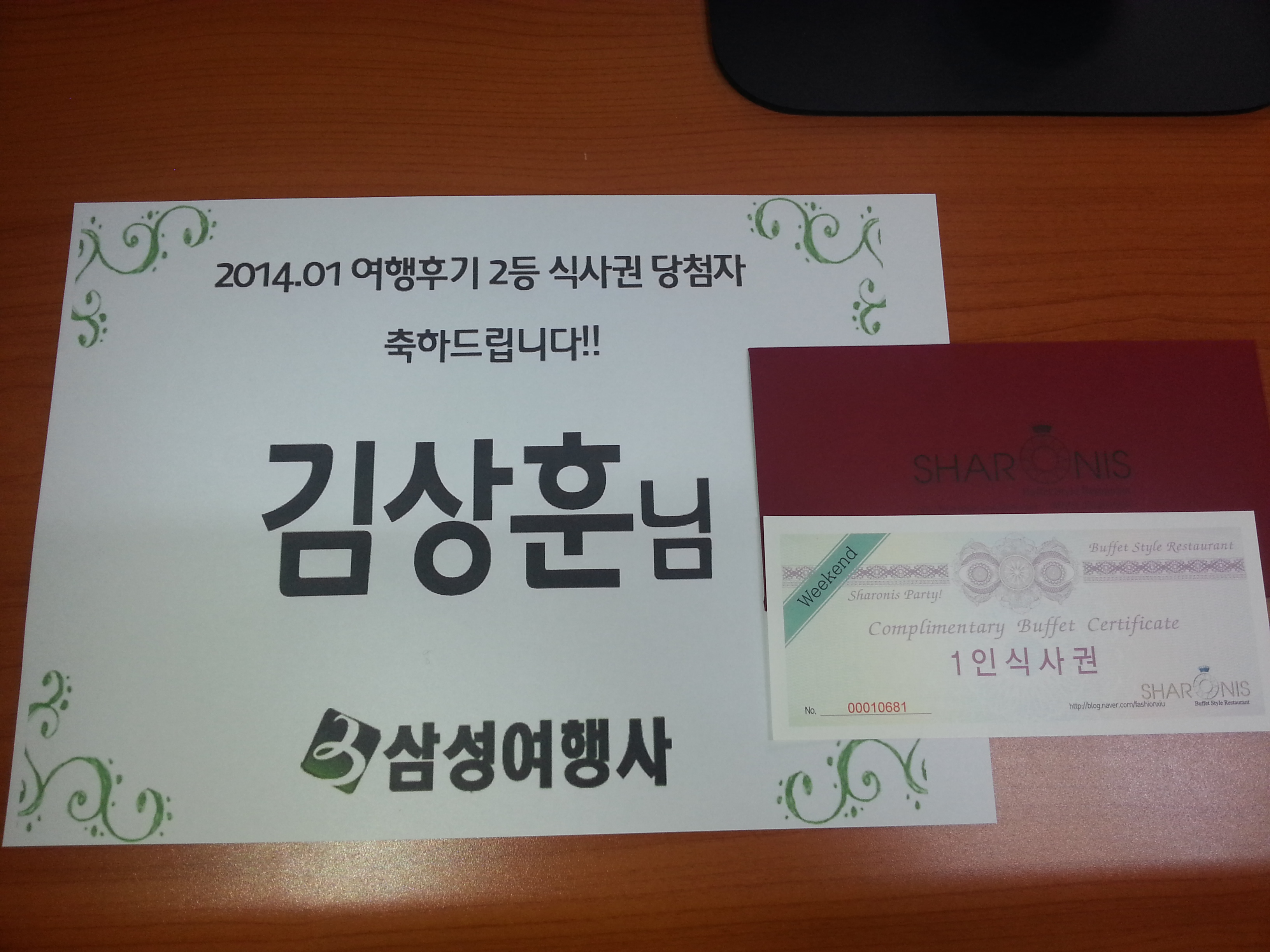 2등 샤로니스레스토랑 식사권 당첨자 : 김상훈님 (010-xxxx-2693)